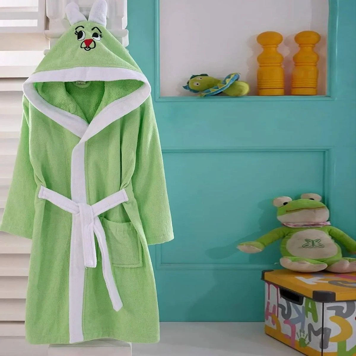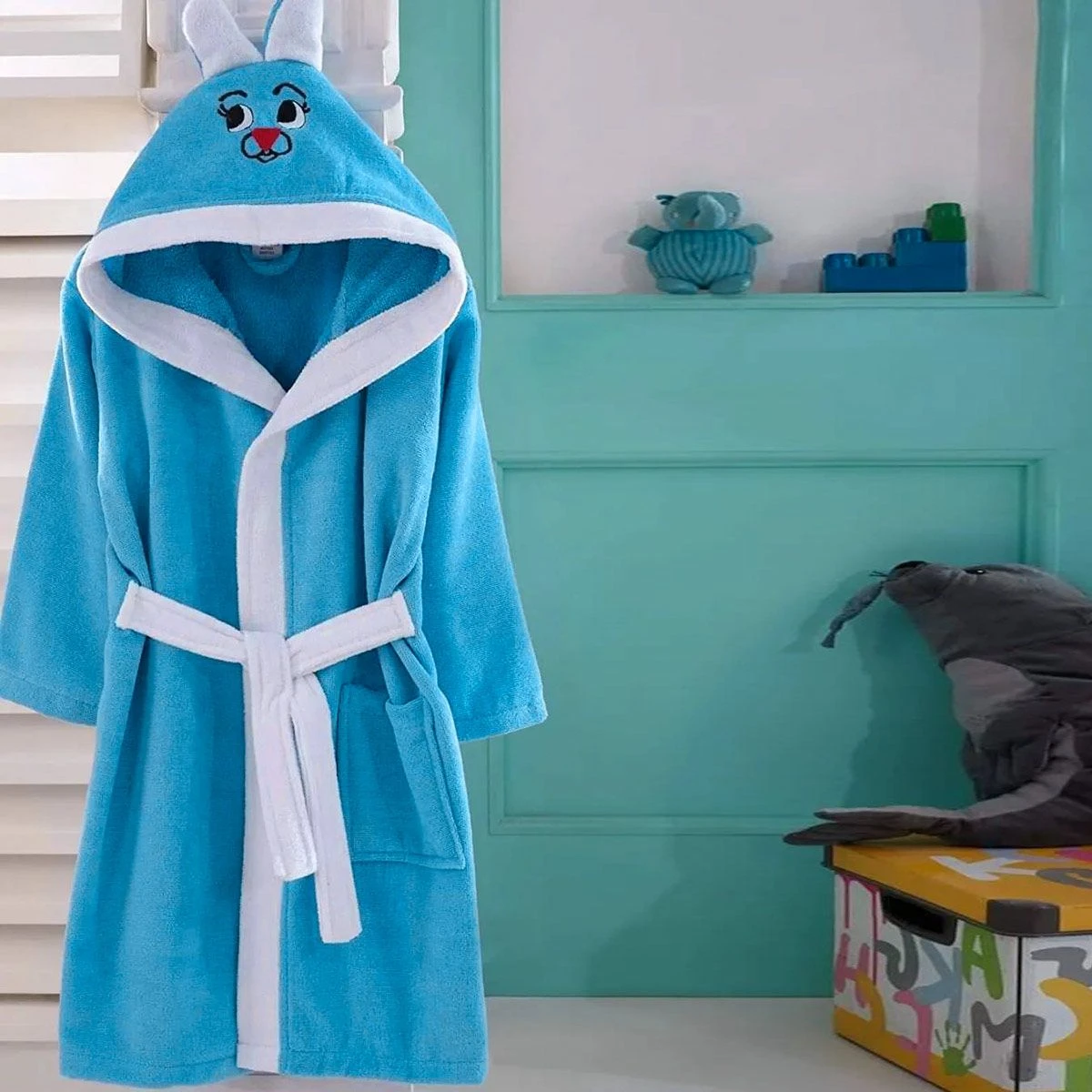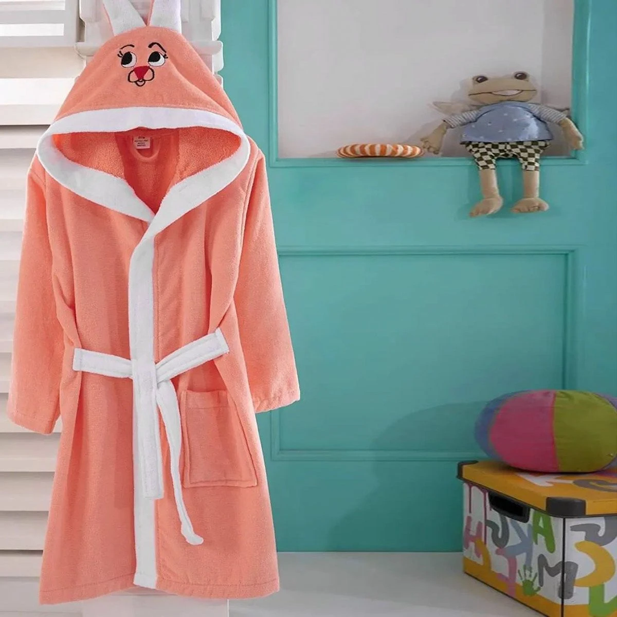 L’accappatoio Coniglietto Rabbit è realizzato in spugna, morbida e assorbente, con un simpatico ricamo sul cappuccio che riproduce il volto di un tenero coniglio. E’ adatto per far divertire sia i bimbi più piccoli dopo il bagnetto che quelli più grandi dopo la doccia.
