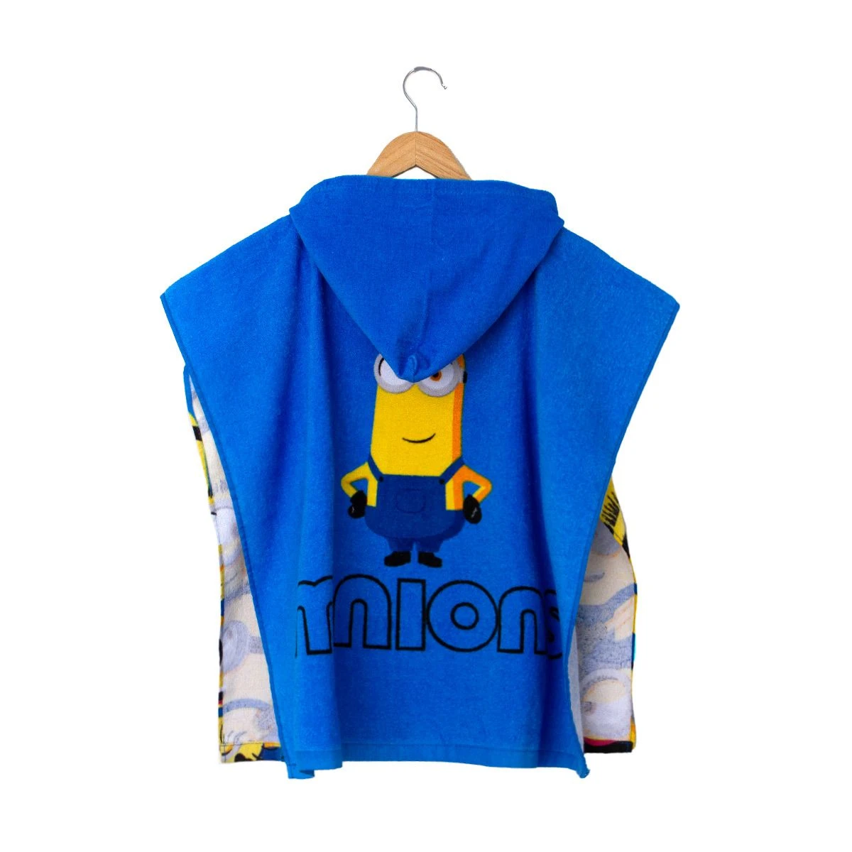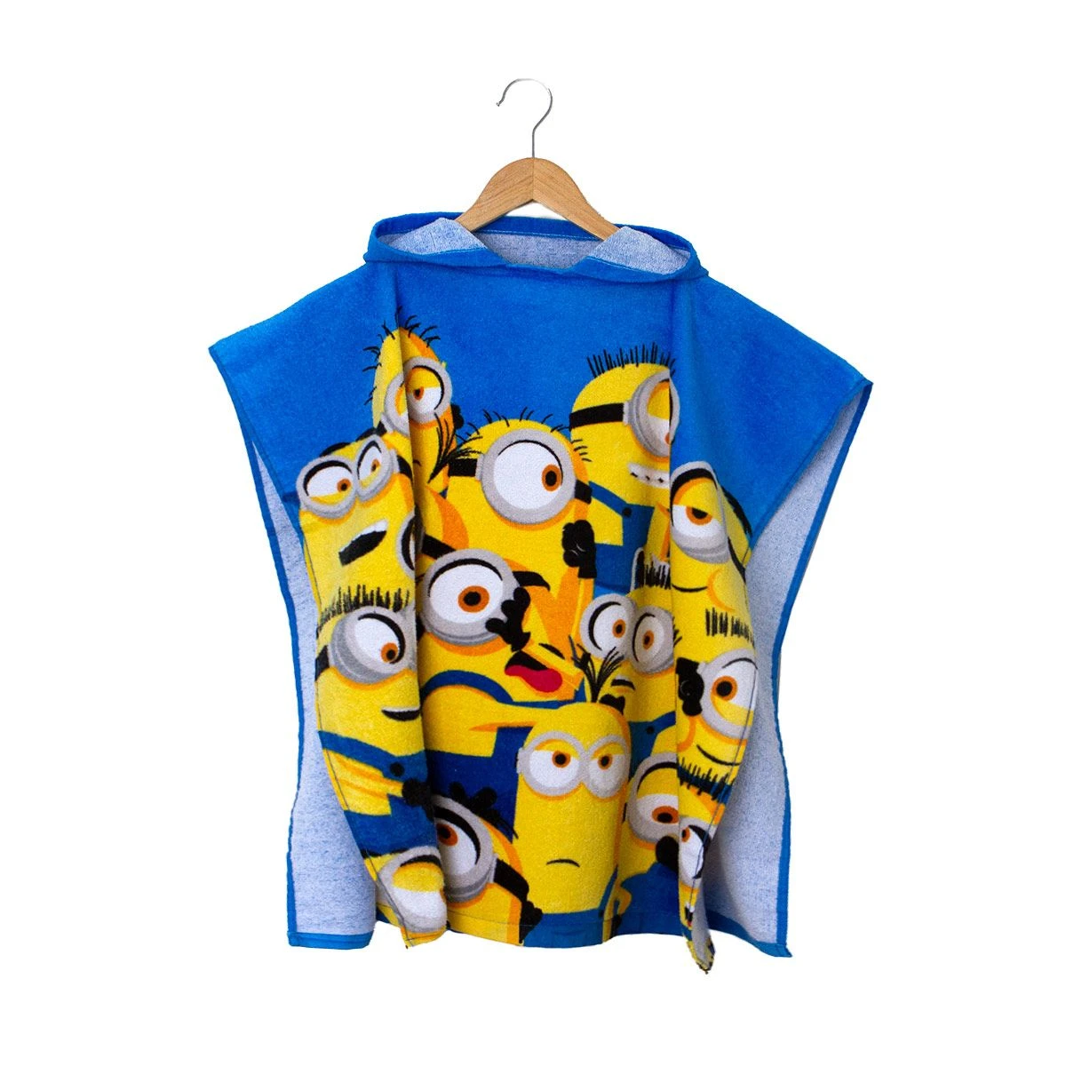 Minions, uno dei cartoni piu amati dalle nuove generazioni. Simpatici e mai banali accompagneranno i tuoi figli al mare e in piscina con questo splendido poncho con cappuccio.