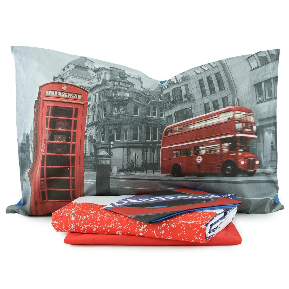 La città di Londra si caratterizza per alcuni elementi che la rendono famosa in tutto il mondo in particolare la classica cabina telefonica di colore rosso ed il logo della metropolitana “underground”. Tutto lo stile eclettico di questa città cosmopolita è riprodotto sul completo copripiumino Union Jack della Bassetti, l’articolo è realizzato al 100% in puro cotone naturale nel rispetto di tutte le norme in tema di ecologia vigenti.