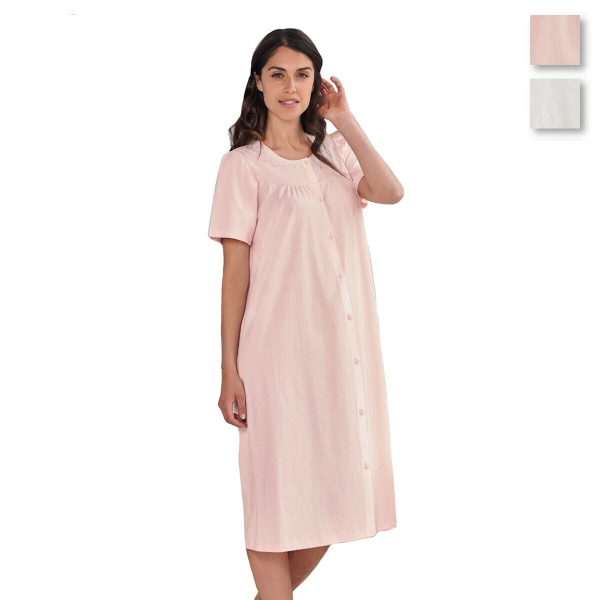 | Dettagli | La confezione contiene una camicia da notte estiva a mezza manica Tinta unita Aperta sul davanti con bottoncini con effetto lucido Manica raglan che permette un ampio movimento della spalla e del braccio Girocollo con delicato pizzo Taglio classico con pence sopra seno Lunghezza media sotto al ginocchio Modello pratico e confortevole per vestire tutte le taglie, anche quelle forti Jersey di puro cotone, fresco e leggero Adatta come camicia clinica, premaman o anche per il parto Confezionata in una scatola stampata |