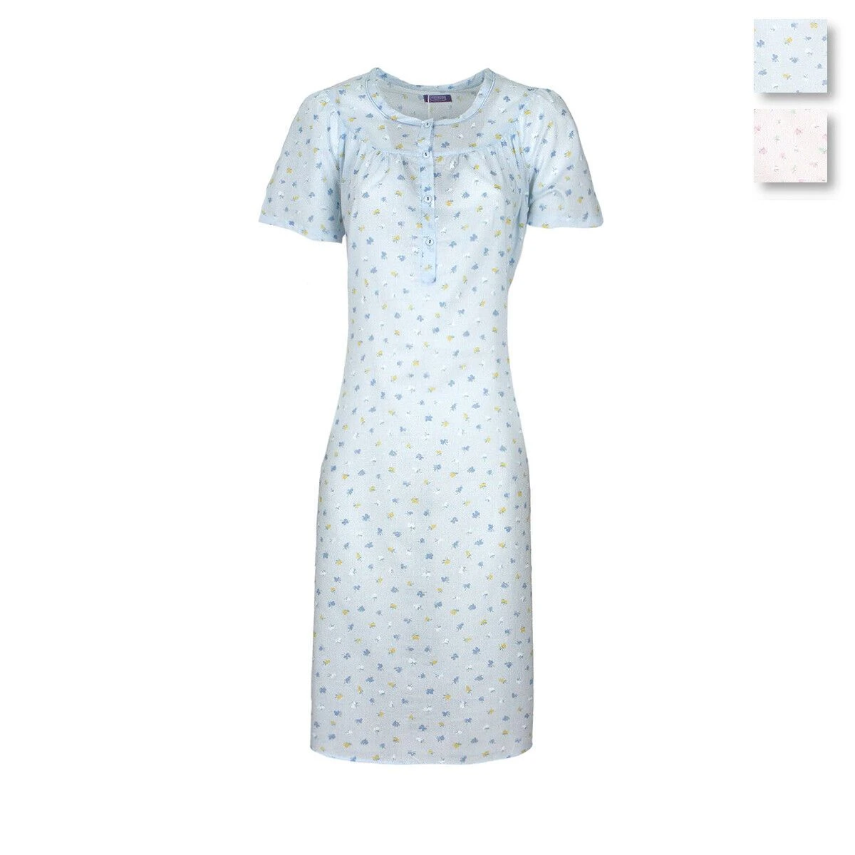 | Dettagli | La confezione contiene una camicia da notte per donna Motivo stampato con fiorellini colorati Girocollo serafino con bottoncini Taglio classico con pence sopra seno Manica raglan che permette un ampio movimento della spalla e del braccio Lunghezza media sotto al ginocchio Modello pratico e confortevole per vestire tutte le taglie, anche quelle forti Batista di puro cotone, fresco e leggero Capo premaman, adatto per donne incinte oppure per l’allattamento Confezionata in una scatola stampata |