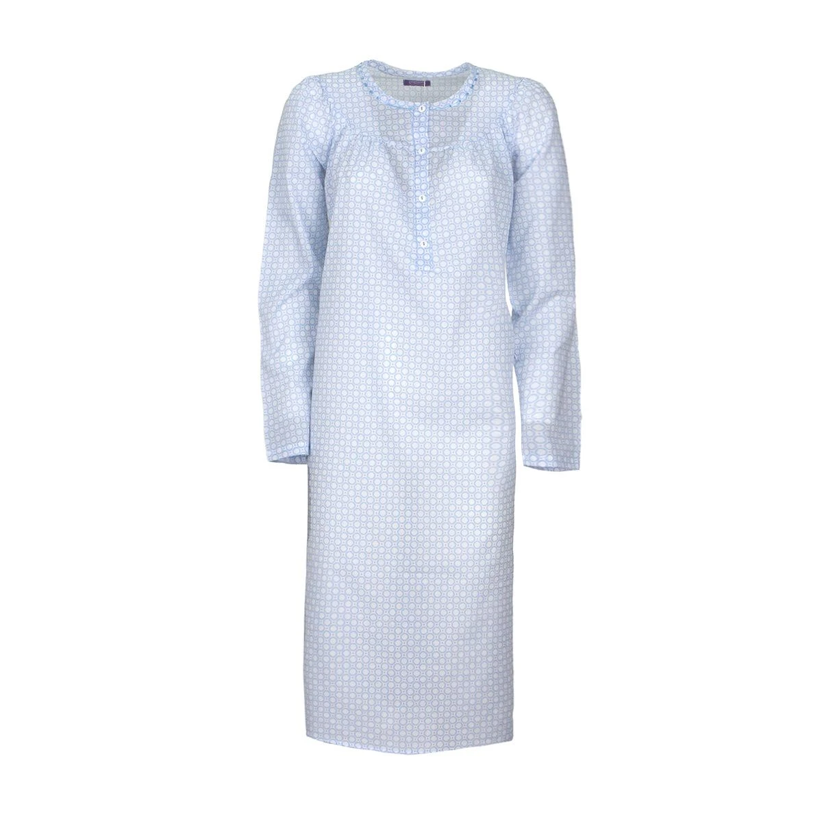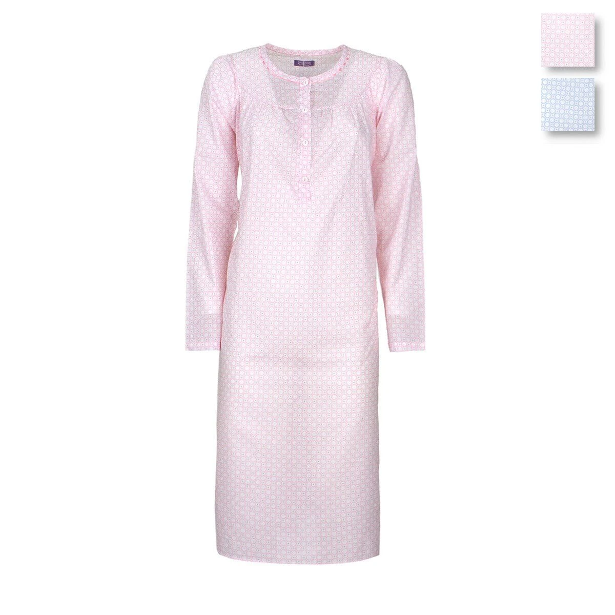 | Dettagli | La confezione contiene una camicia da notte per donna Motivo stampato geometrico Girocollo serafino con bottoncini Taglio classico con pence sopra seno Manica raglan che permette un ampio movimento della spalla e del braccio Lunghezza media sotto al ginocchio Modello pratico e confortevole per vestire tutte le taglie, anche quelle forti Batista di puro cotone, fresco e leggero Capo premaman, adatto per donne incinte oppure per l’allattamento Confezionata in una scatola stampata |