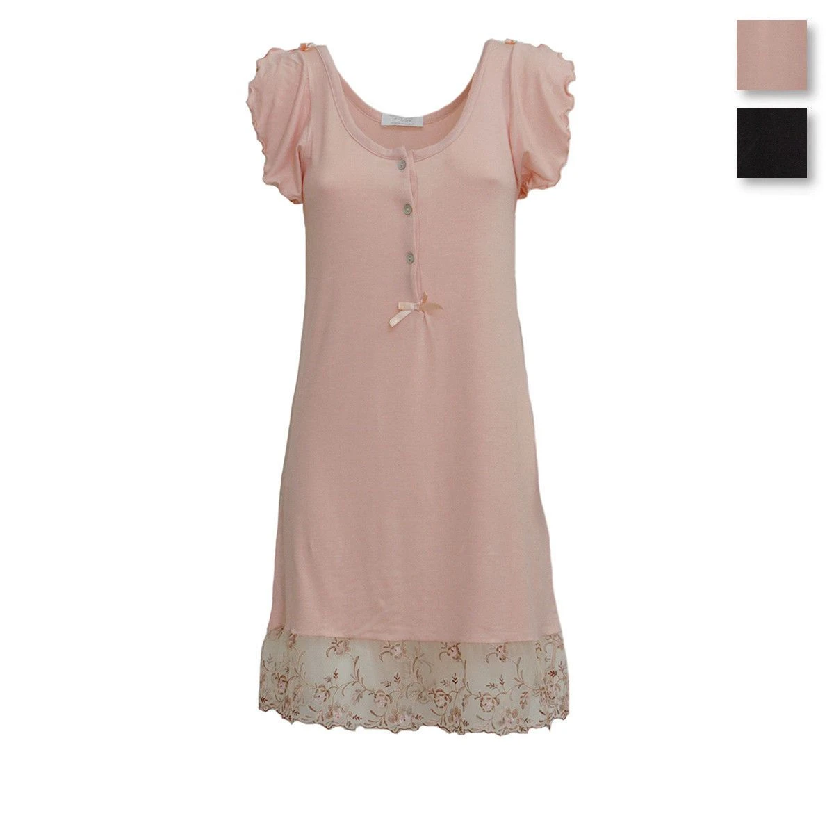 | Dettagli | La confezione contiene una camicia da notte per donna Maniche a giro con volant laterali e fiocchetti Girocollo serafino con apertura a 3 bottoni Balza ornamentale in velo con ricamo floreale a contrasto posta all’estremità della gonna Capo in tinta unita Utilizzabile anche come vestitino da casa Prodotto confezionato in scatola Made in Italy |