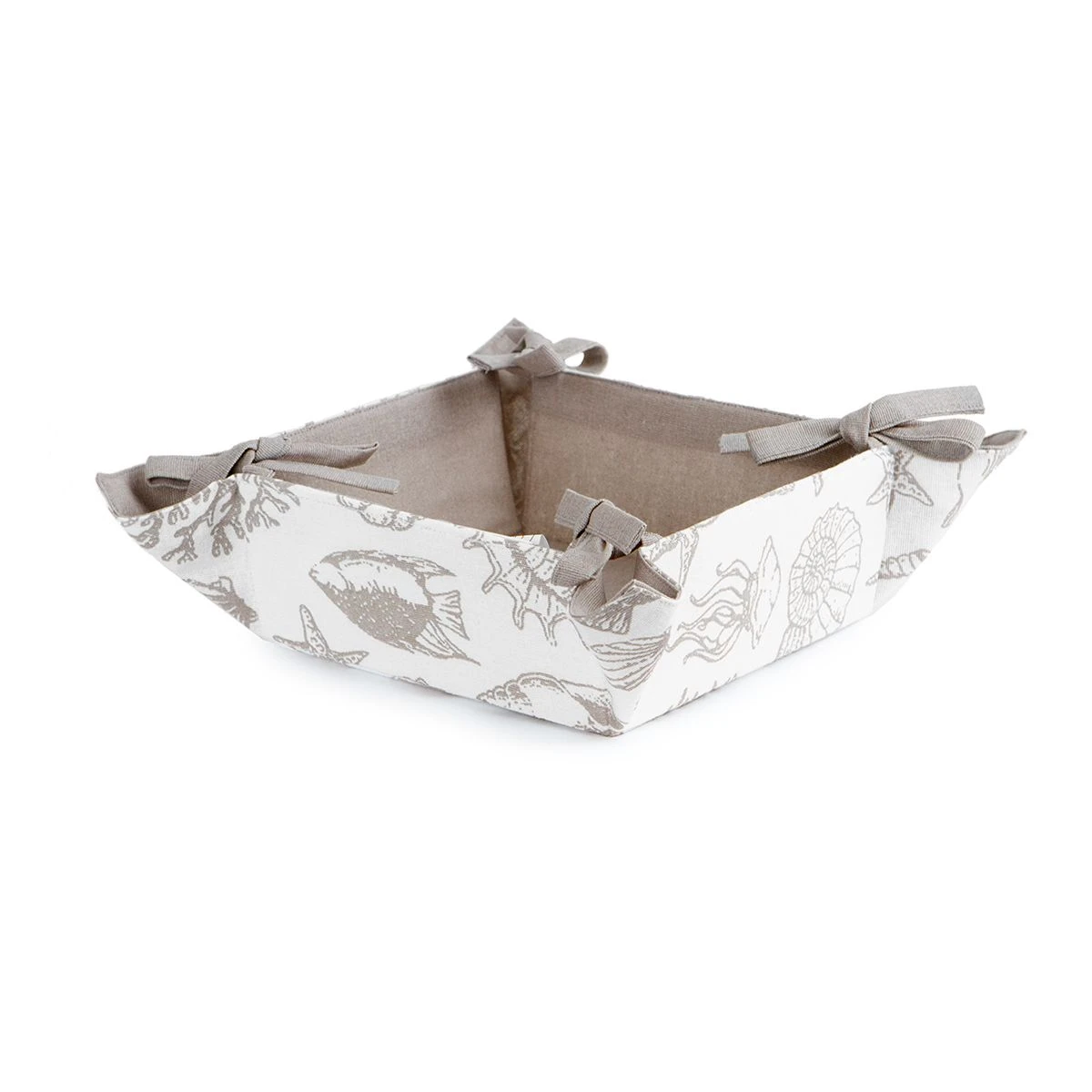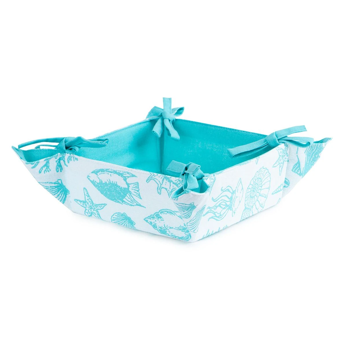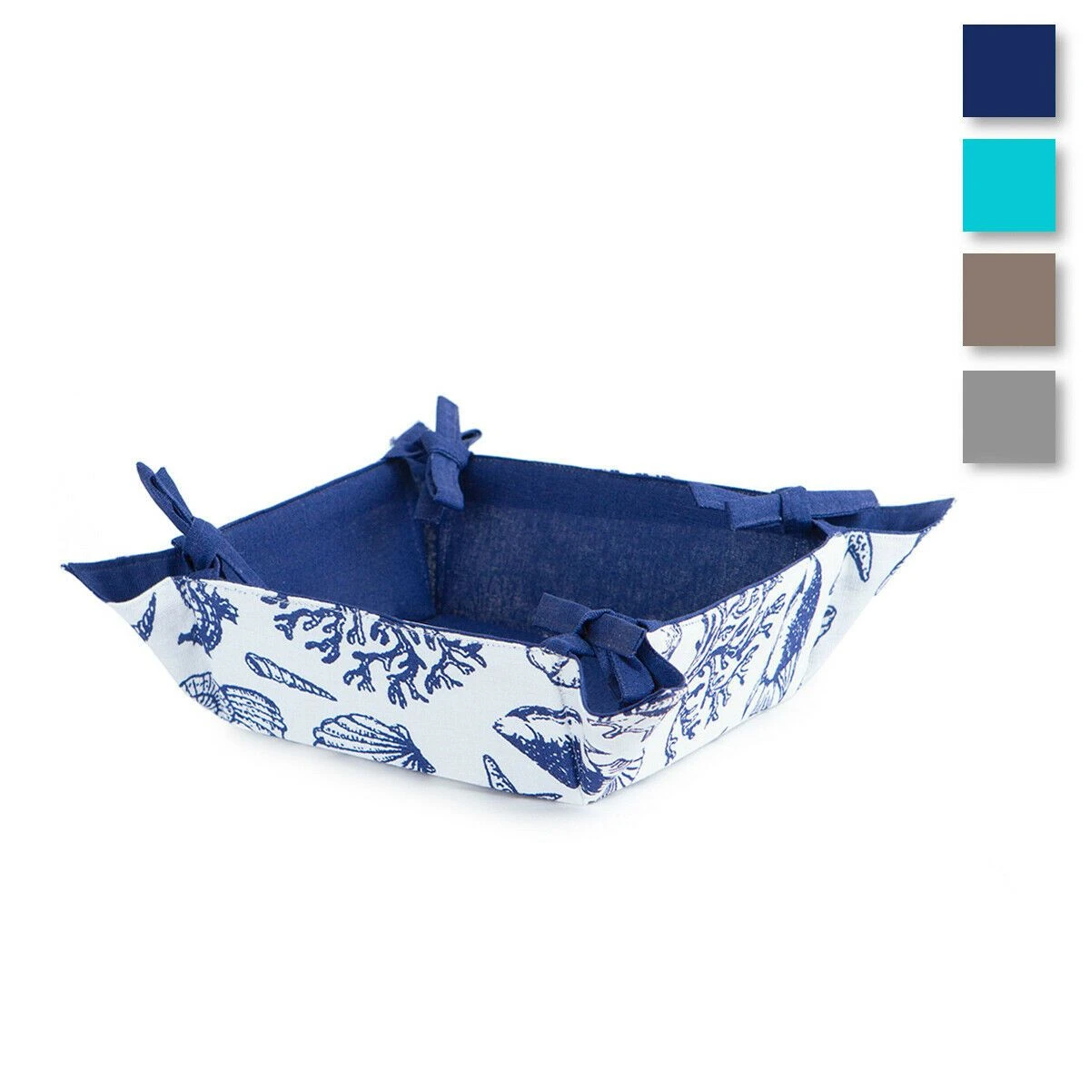 | Dettagli | La confezione contiene un cestino portapane Base quadrata Motivo marino con coralli Interno in tinta unita Pieghevole con laccetti ad ogni angolo |
