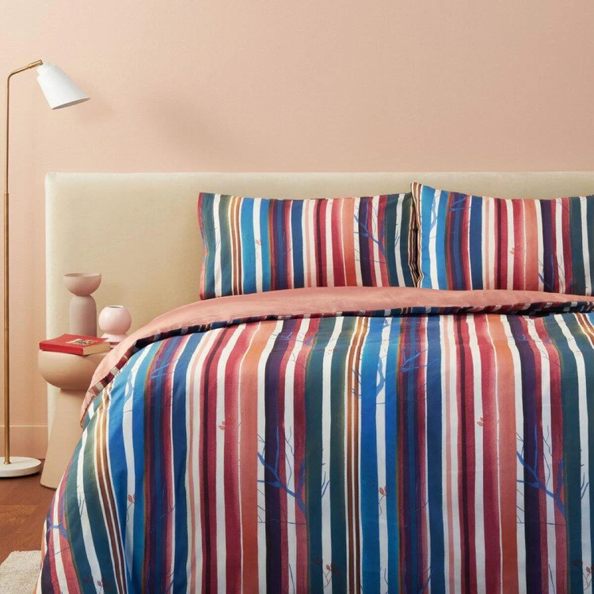 Bassetti compone e realizza un copripiumino che gioca a nascondino con il suo motivo a righe ad arricchire il tessuto in puro cotone. Un vedo e non vedo tra i vari colori che si uniscono in una peculiare versione Mattone, vivacizzando l’ambiente e adattandosi a diversi stili d’arredo.