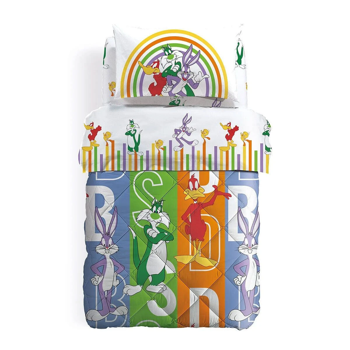 Bugs Bunny, Duffy Duck e Gatto Silvestro sono i protagonisti del completo lenzuola Colors di Caleffi. Le notti dei tuoi ragazzi saranno allegre, vivaci e coloratissime.