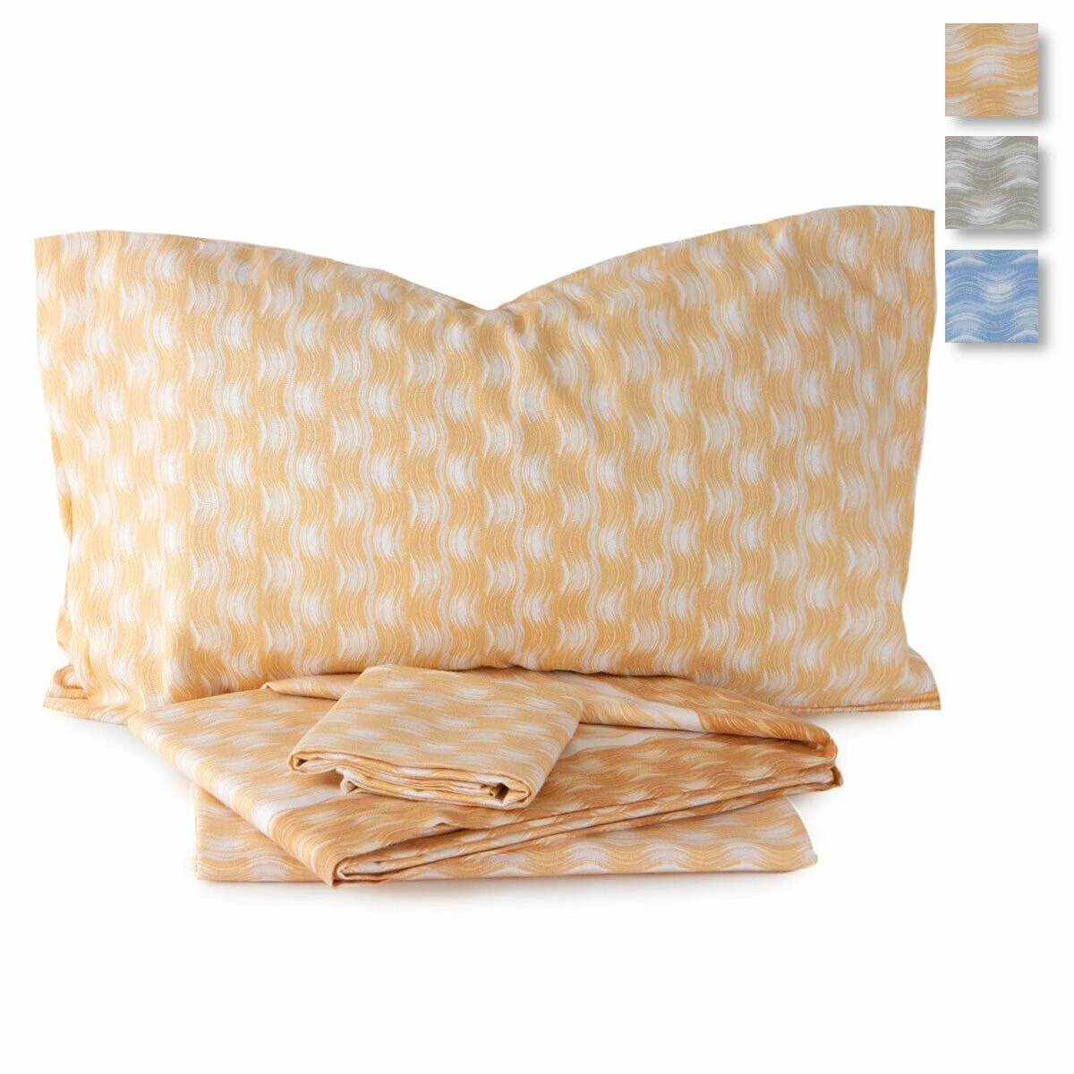 Lasciati cullare dalla qualità dei materiali made in Italy del completo lenzuola Bice di Morbidissimi, realizzato in calda e morbida flanella. Il dinamico motivo ad onde dona un tocco di stile a questo capo, rendendolo fresco e moderno.