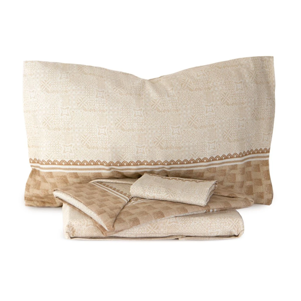 | Dettagli | La confezione contiene un completo lenzuola per letto matrimoniale composto da: 1 lenzuolo sopra 1 lenzuolo sotto con angoli La dimensione per letto singolo contiene una federa, quella per letto matrimoniale due federe Motivo geometrico Misure maxi Per motivi tecnici le misure potrebbero variare di qualche centimetro La stampa delle federe potrebbe differire dall’immagine Prodotto di discreta qualità |