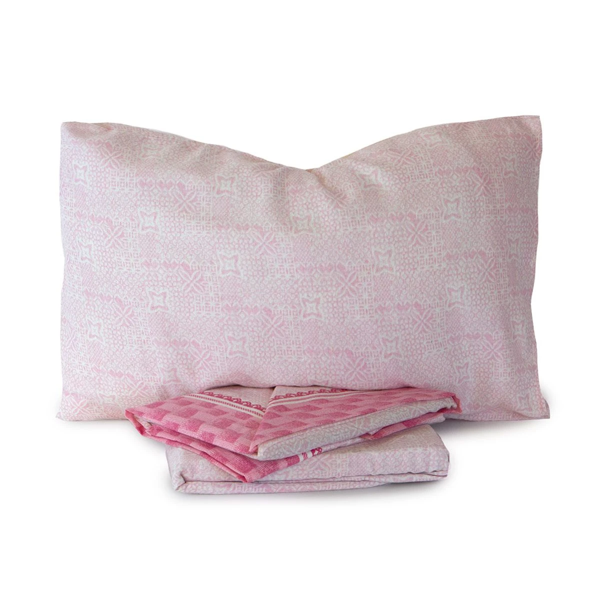 | Dimensioni | Singolo: Lenzuolo sopra: 150×280 cm Lenzuolo sotto con angoli: 90×200+25 cm Federa: 50×80 cm Matrimoniale: Lenzuolo sopra: 250×290 cm Lenzuolo sotto con angoli: 180×200+25 cm Federe: 50×80 cm |