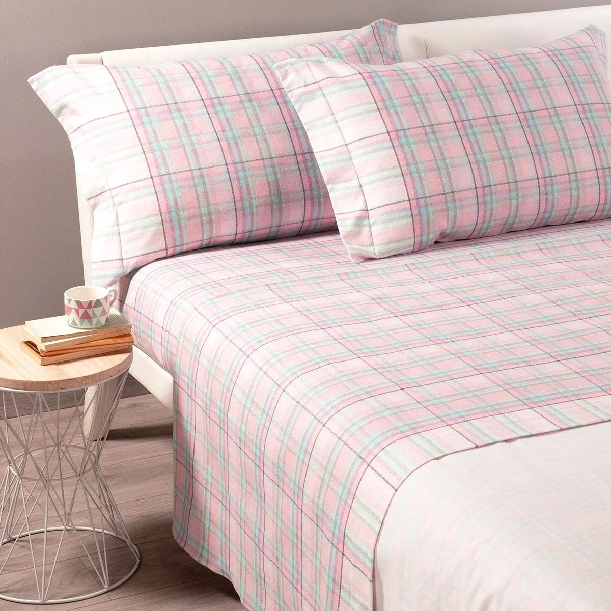 La flanella di cotone è un materiale caldo e morbido ideale per il periodo invernale. Il tepore che dona al corpo, lo riscalda favorendo il sonno ed il riposo. Una semplice stampa dona una delicatezza alla camera da letto.