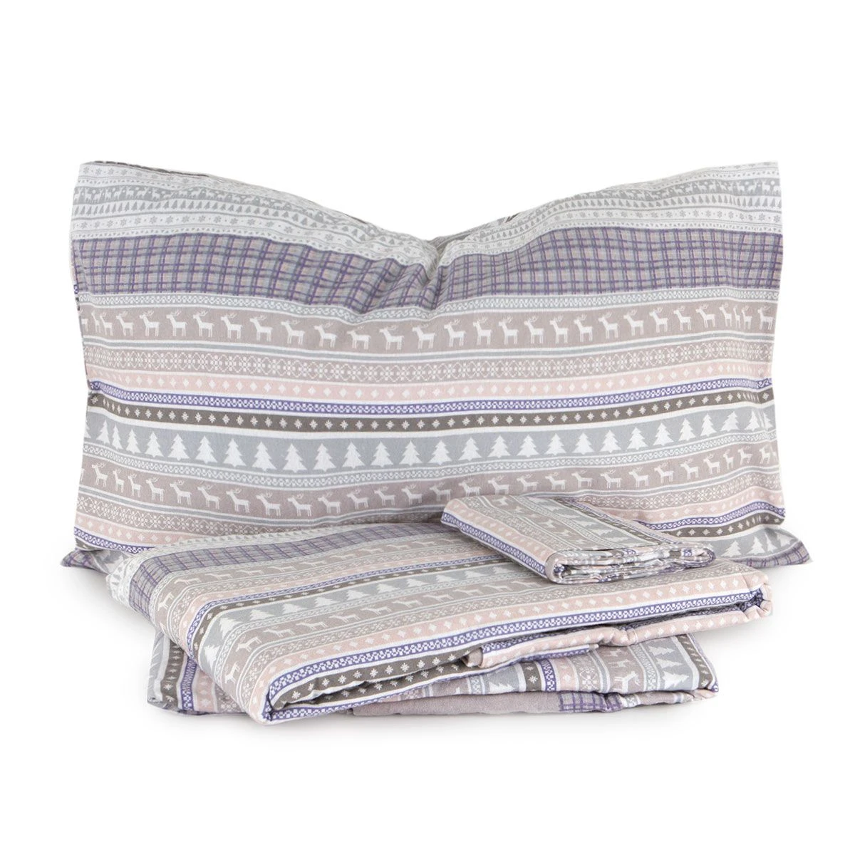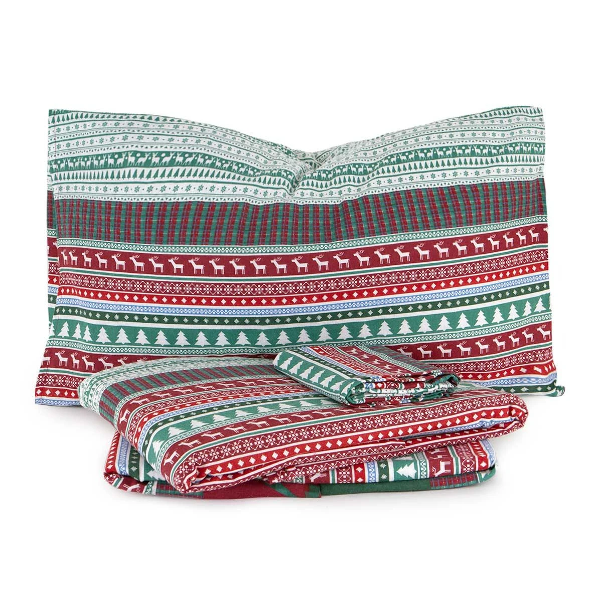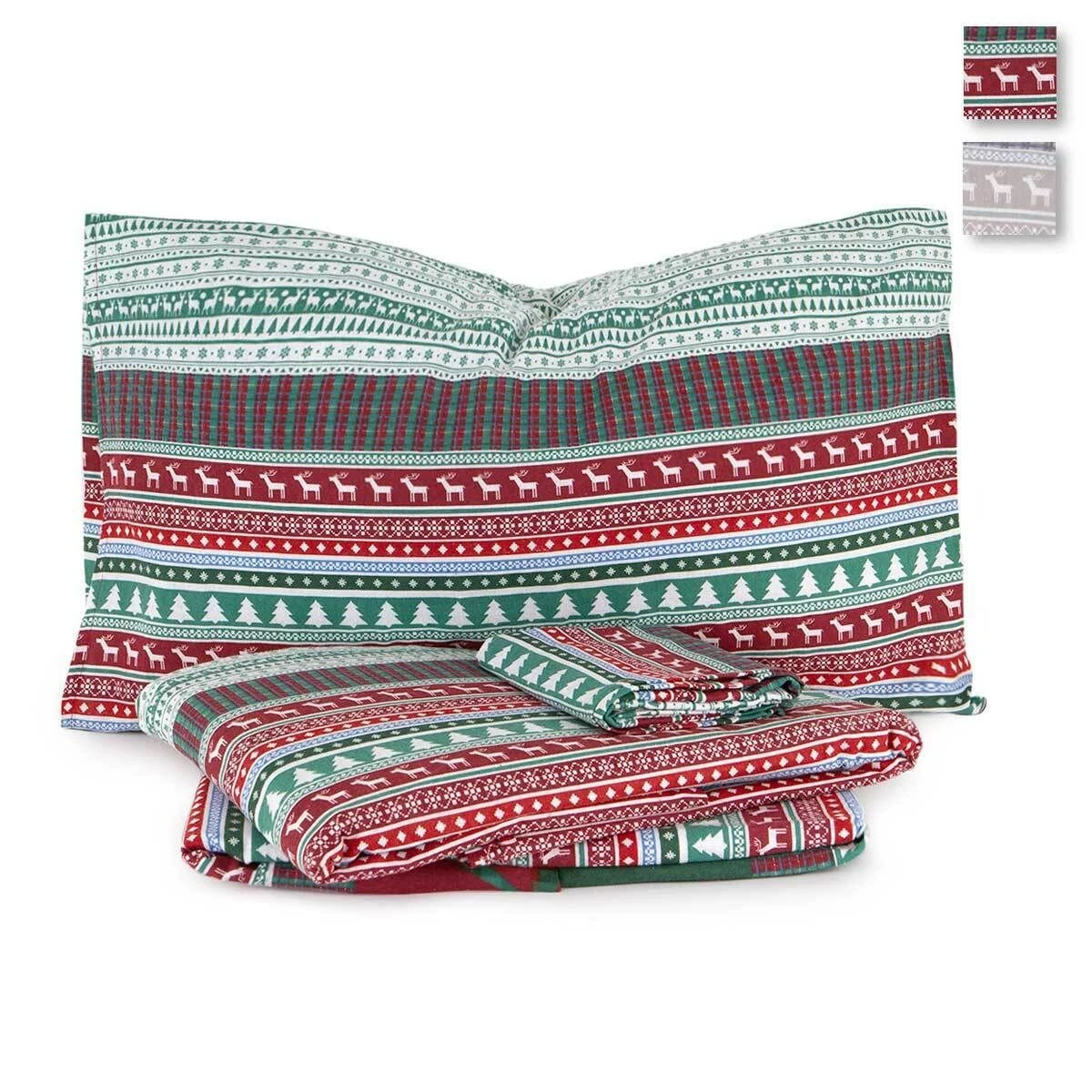 | Dettagli | La confezione contiene un completo lenzuola in flanella 1 lenzuolo sopra 1 lenzuolo sotto con angoli La dimensione per letto singolo comprende una federa, quella per letto matrimoniale due federe Federe a sacchetto Motivo natalizio con alberi di natale e renne Calda e morbida flanella di puro cotone Ideale per il periodo invernale |
