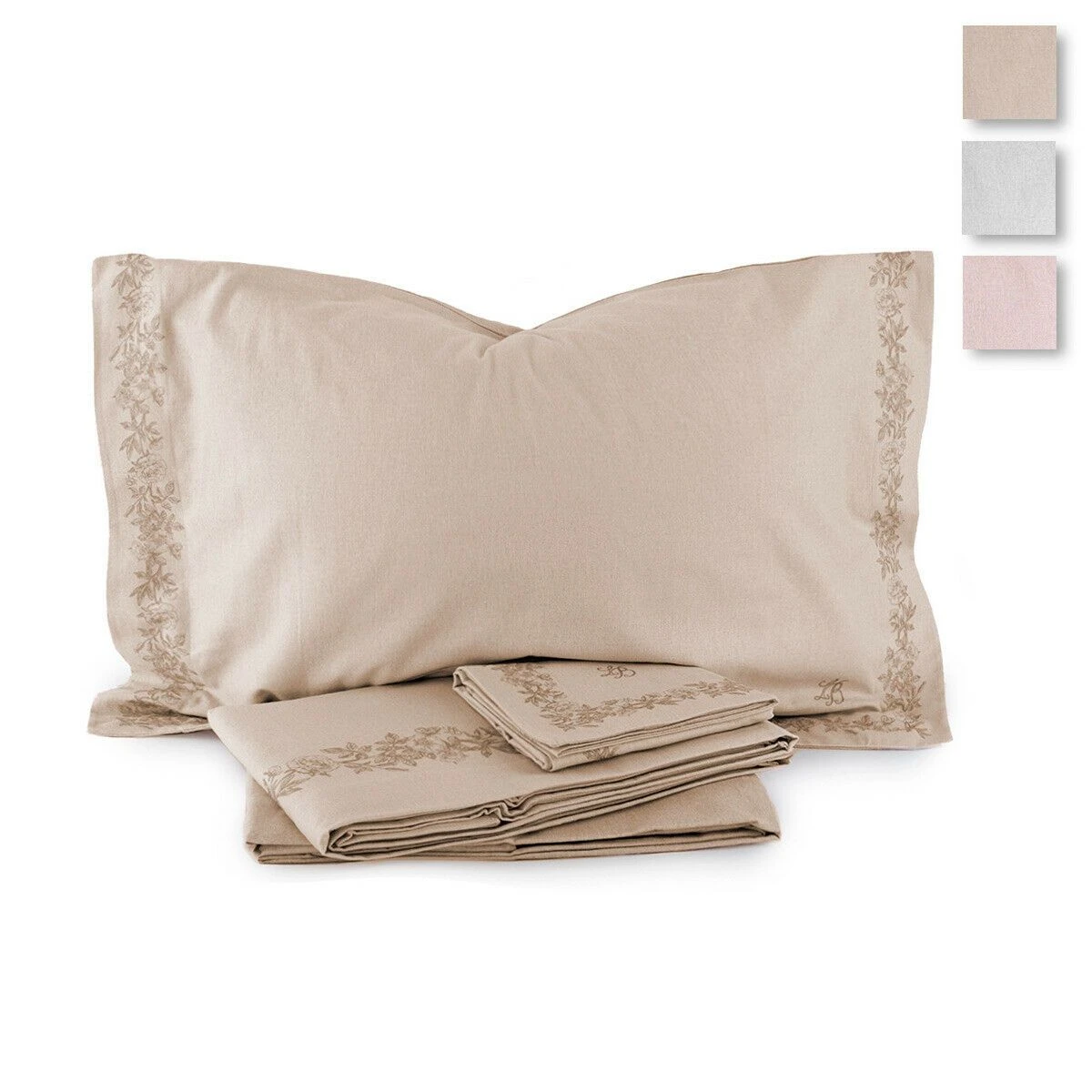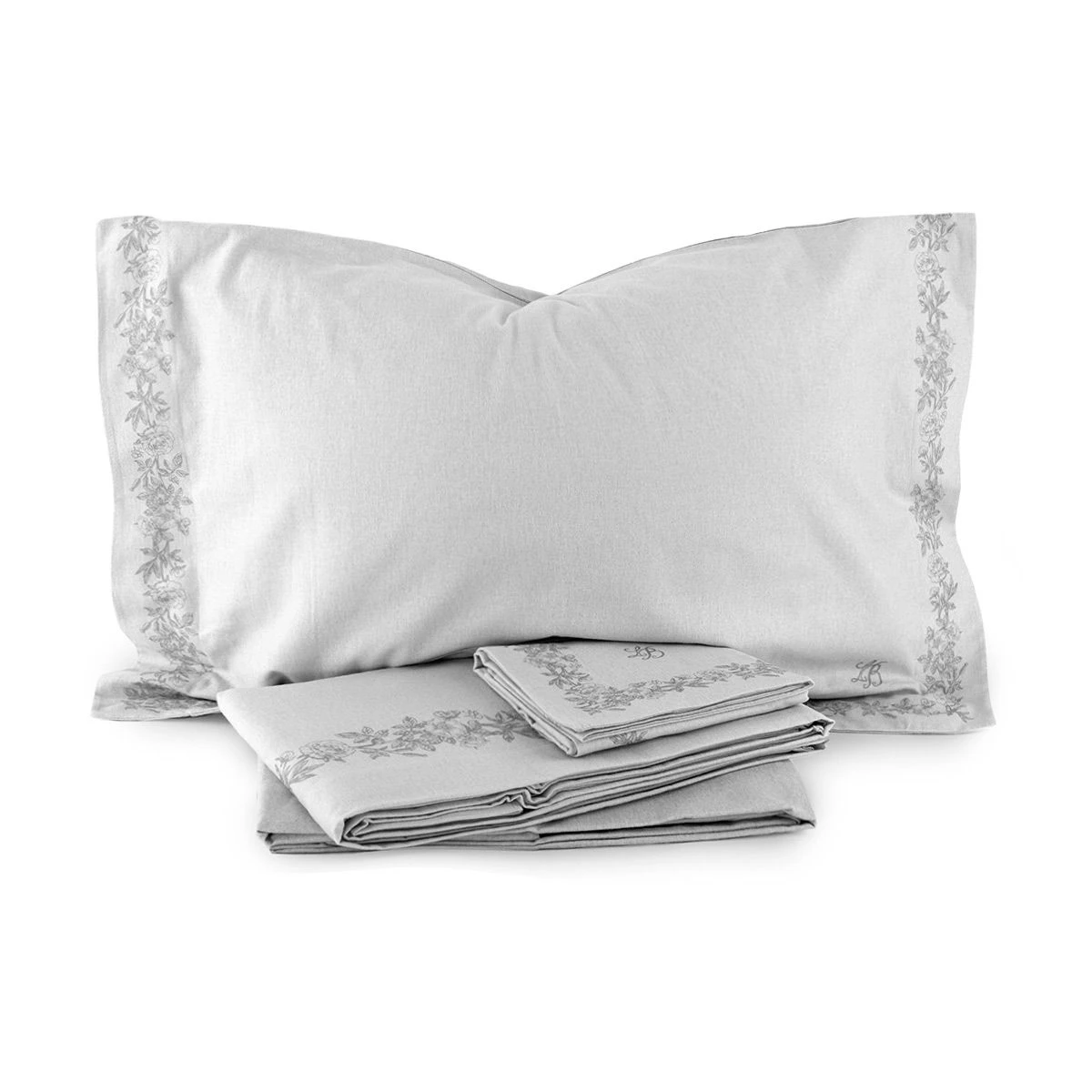 Una delicata decorazione dal motivo floreale dona vitalità alla tinta unita con il completo lenzuola Satina firmato Laura Biagiotti. Questo capo dallo stile semplice ed elegante è realizzato in calda flanella di puro cotone, che garantirà un caldo abbraccio nelle fredde serate invernali.