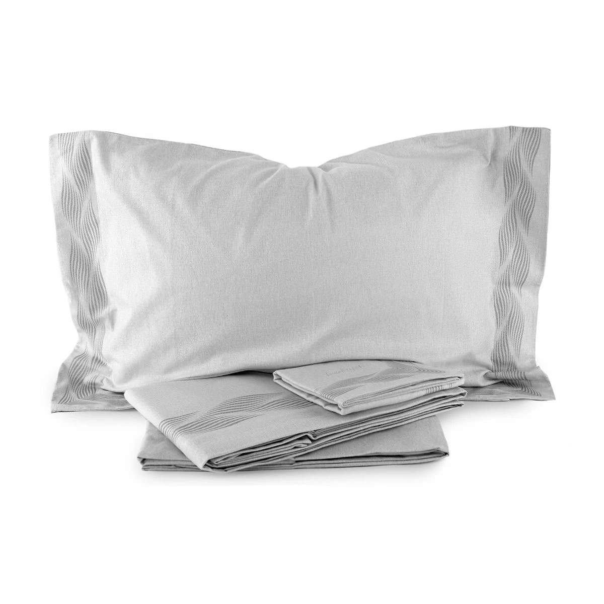 | Dimensioni | Lenzuolo sopra: 260×290 cm Lenzuolo sotto con angoli: 180×200 cm Federe: 52×80 cm |