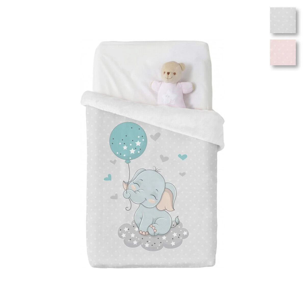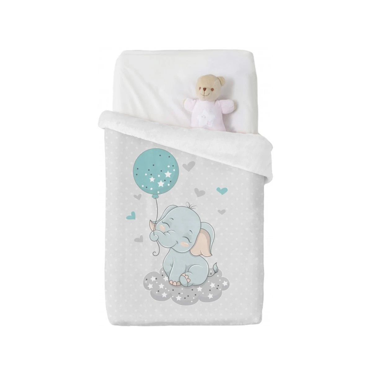 Un elefantino come amico per tuo figlio durante le freddi notti invernali. Scegli questa splendida coperta in pile vellutato di Manterol disponibile in due diverse colorazioni.