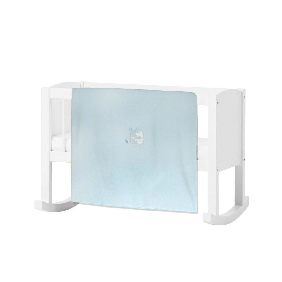 | Dettagli | La confezione contiene una copertina in ciniglia per culla Due piccoli coniglietti ricamati Sfoderabile tramite bottoni Calda ed avvolgente Confezionata in una scatola stampata |