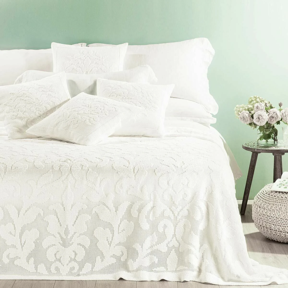Il copriletto Camogli di Caleffi è realizzato con una lavorazione in filo traforata che dona grande eleganza a questo capo. Il colore bianco trasmette alla vista una sensazione di freschezza, ulteriormente amplificata dal suo tipo di lavorazione, e rende questo capo facilmente abbinabile a vari stili di arredamento.