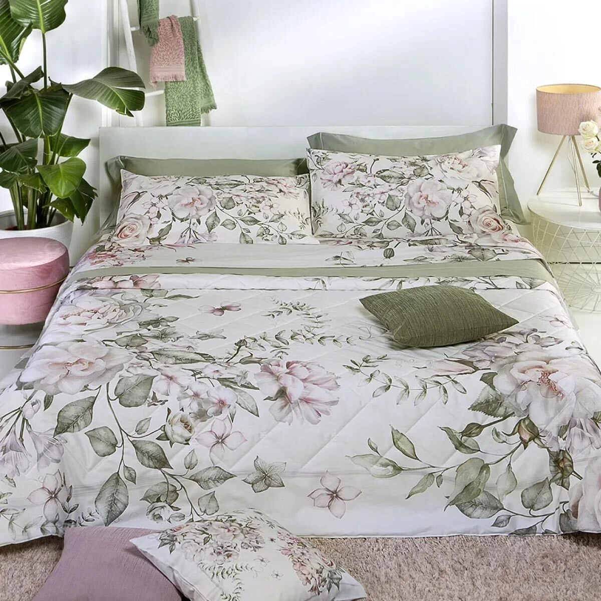 | Dettagli | La confezione contiene un copriletto trapuntato per letto matrimoniale due piazze Stampa digitale ad alta definizione con delicato motivo floreale Trapuntatura a rombi Angoli stondati Rifinito a mano Pregiatissimo raso di puro cotone 300 tc da 60 fili/cmq Imbottitura in fibra anallergica 100 gr/mq Colori solidi e resistenti ai lavaggi Ideale per il periodo primaverile e autunnale Custodito in una confezione in pvc con manico e zip di chiusura Made in Italy |
