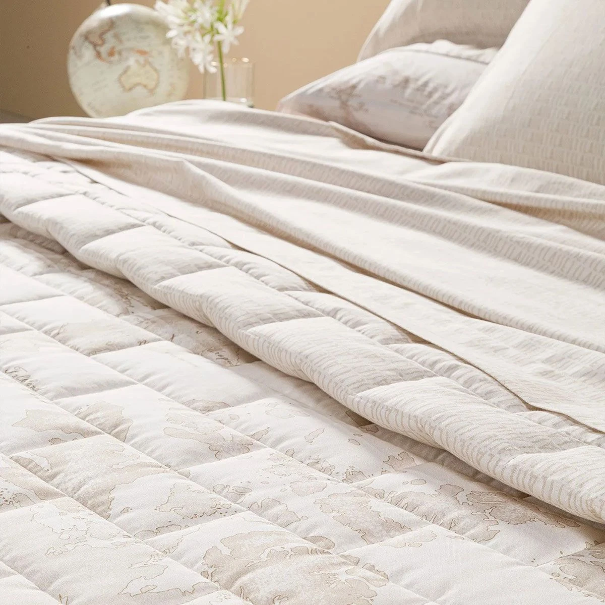 | Dettagli | La confezione contiene un trapuntino Doubleface, retro in tinta unita Stampa digitale di un mappamondo Pregiato raso di puro cotone Imbottitura SOFY in fibra di poliestere anallergica Imbottitura da 80 gr/mq Ideale per la primavera e l’estate ECO COLOR coloranti ecologici certificati privi di sostanze nocive per l’uomo e l’ambiente Made in Italy |