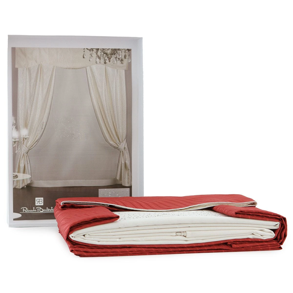 1 mantovana in tessuto jacquard in colore bordeaux misura 45 x 240 cm cucita con fascia a strappo
