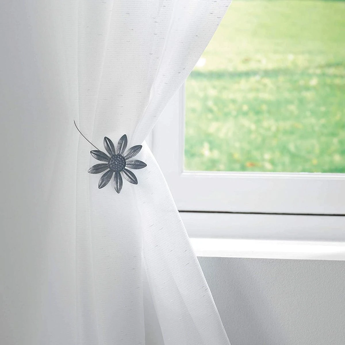 | Dettagli | La confezione contiene un fermatenda in metallo Forma a fiore Dotato di chiusura tramite calamita con laccio Metallo sagomato e levigato Ideale per raccogliere le tende o creare drappeggi |