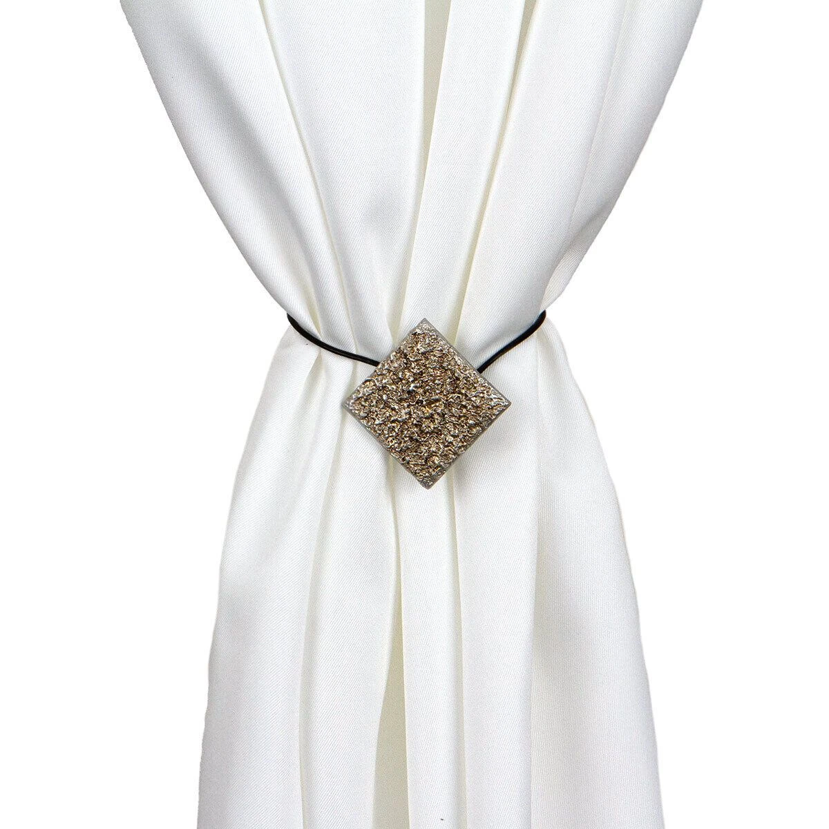 | Dettagli | La confezione contiene un fermatenda in metallo Forma quadrata Dotato di chiusura tramite calamita con laccio Metallo sagomato e levigato Ideale per raccogliere le tende o creare drappeggi |