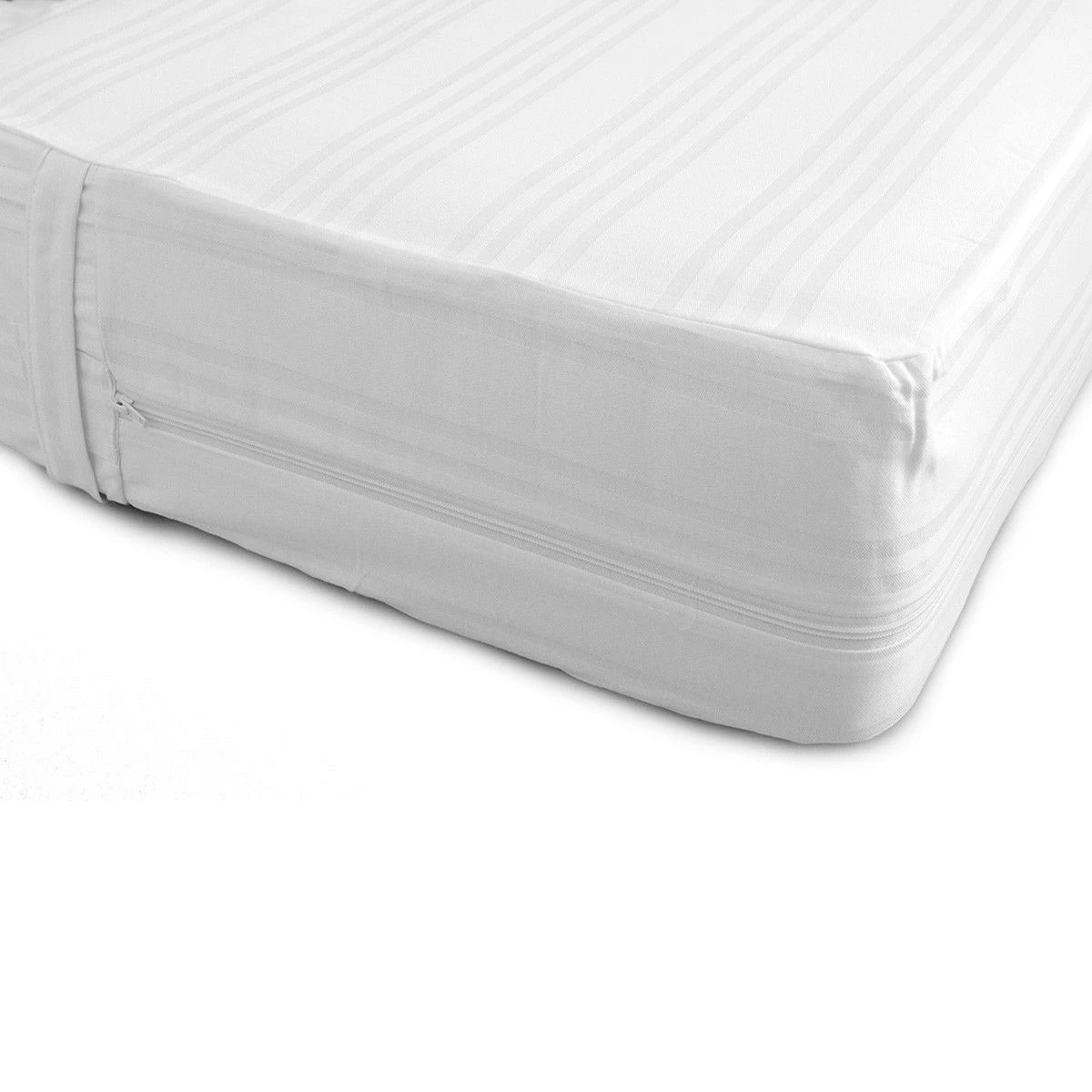 | Dettagli | La confezione comprende una fodera per materasso Esclusiva cerniera ad L su due lati Maniglie laterali Puro cotone damasco con motivo jacquard a righe Traspirante Sanitario Fresco e riposante Elevata qualità |