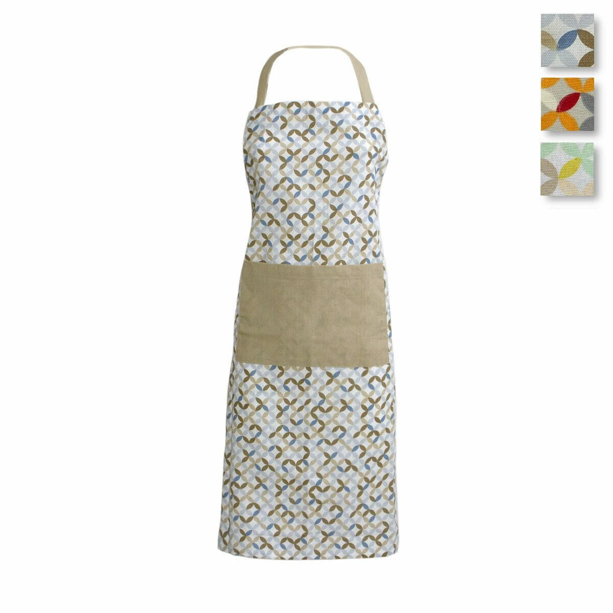 | Dettagli | La confezione contiene un grembiule da cucina stampato Motivo geometrico Tasca anteriore in tinta unita in contrasto di colore Tasca e laccetti in coordinato di colore Creativo ed originale Coordinabile con gli altri articoli |