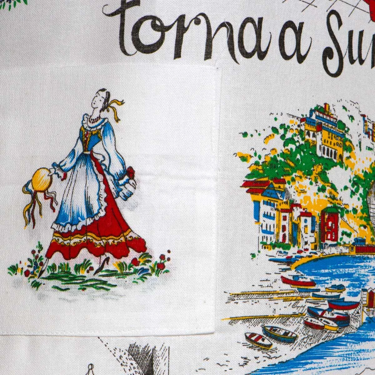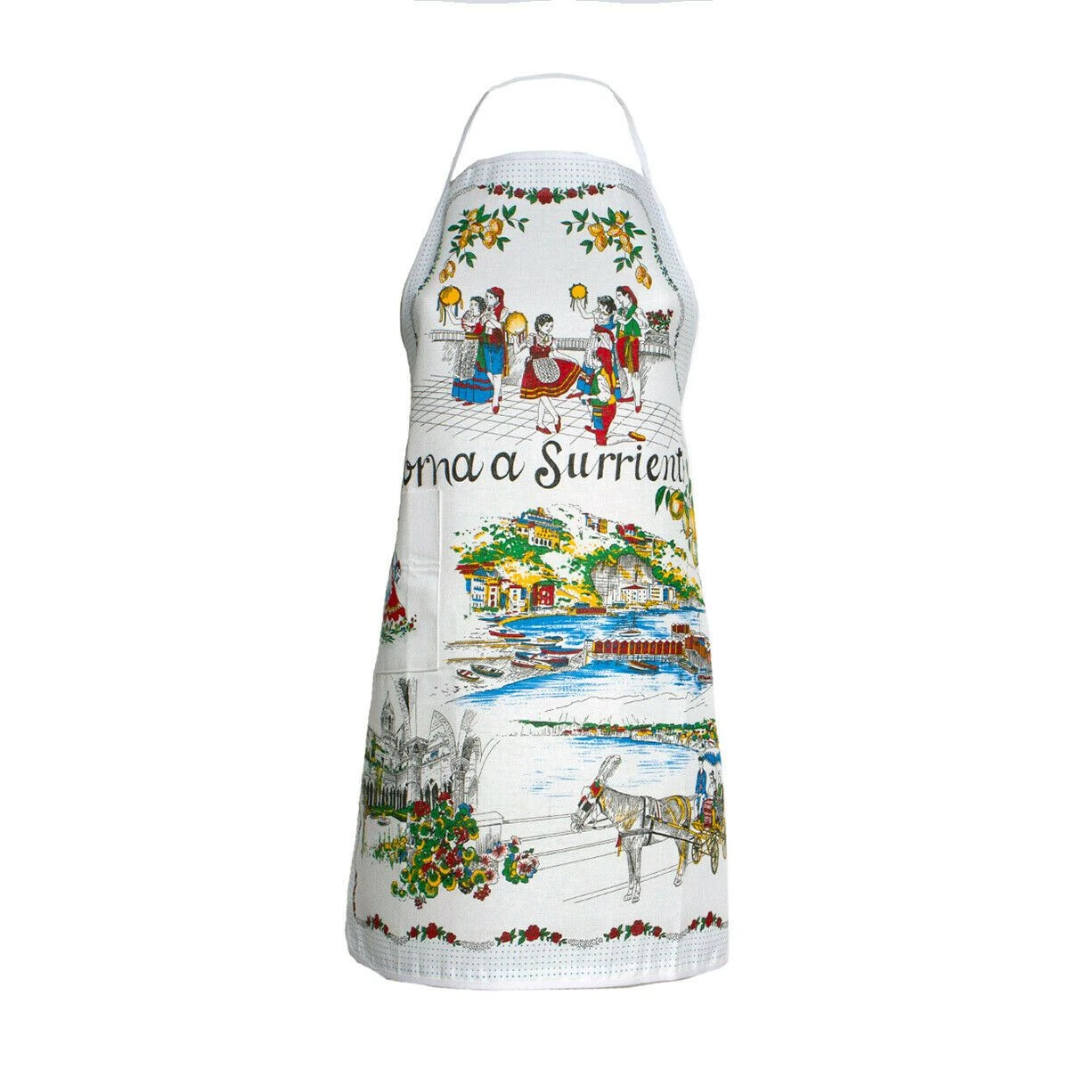 L’Italia è piena di posti meravigliosi, e uno di questi è Sorrento, famosa per i suoi pregiati limoni, per il mare, per il cibo e per tutto quello che ha da offrire. Ritroviamo raffigurate sul grembiule varie immagini che rimandano alle tradizioni e le bellezze di questo luogo.