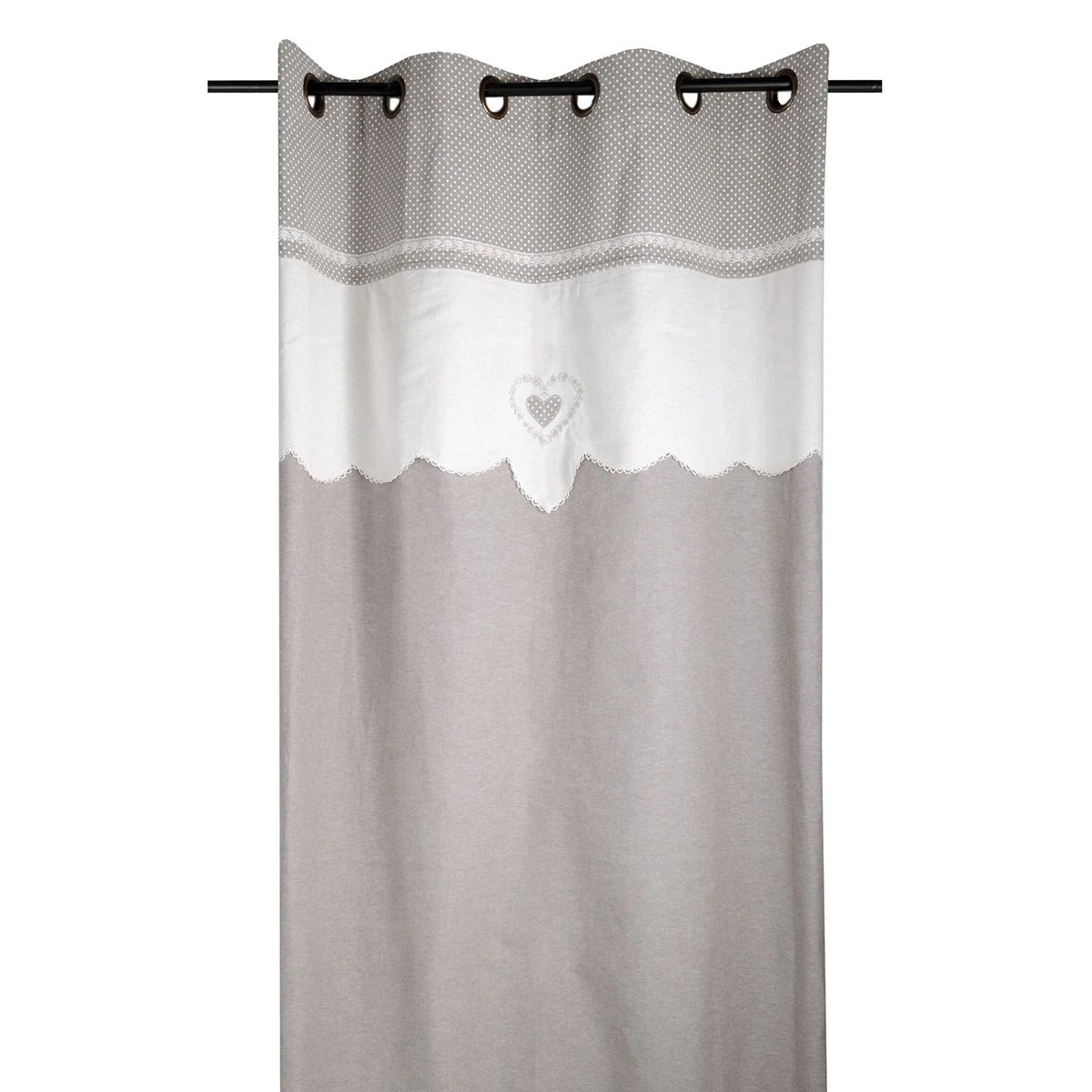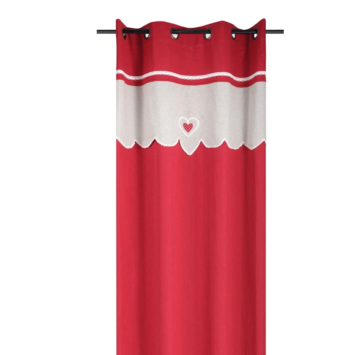 Con dolcezza e romanticismo questa tenda aggiunge un tocco country all’ambiente rendendo l’atmosfera deliziosa ed accogliente. Un solo cuore ricamato al centro della fascia in contrasto colore rende l’intero prodotto davvvero originale e semplice allo stesso tempo.