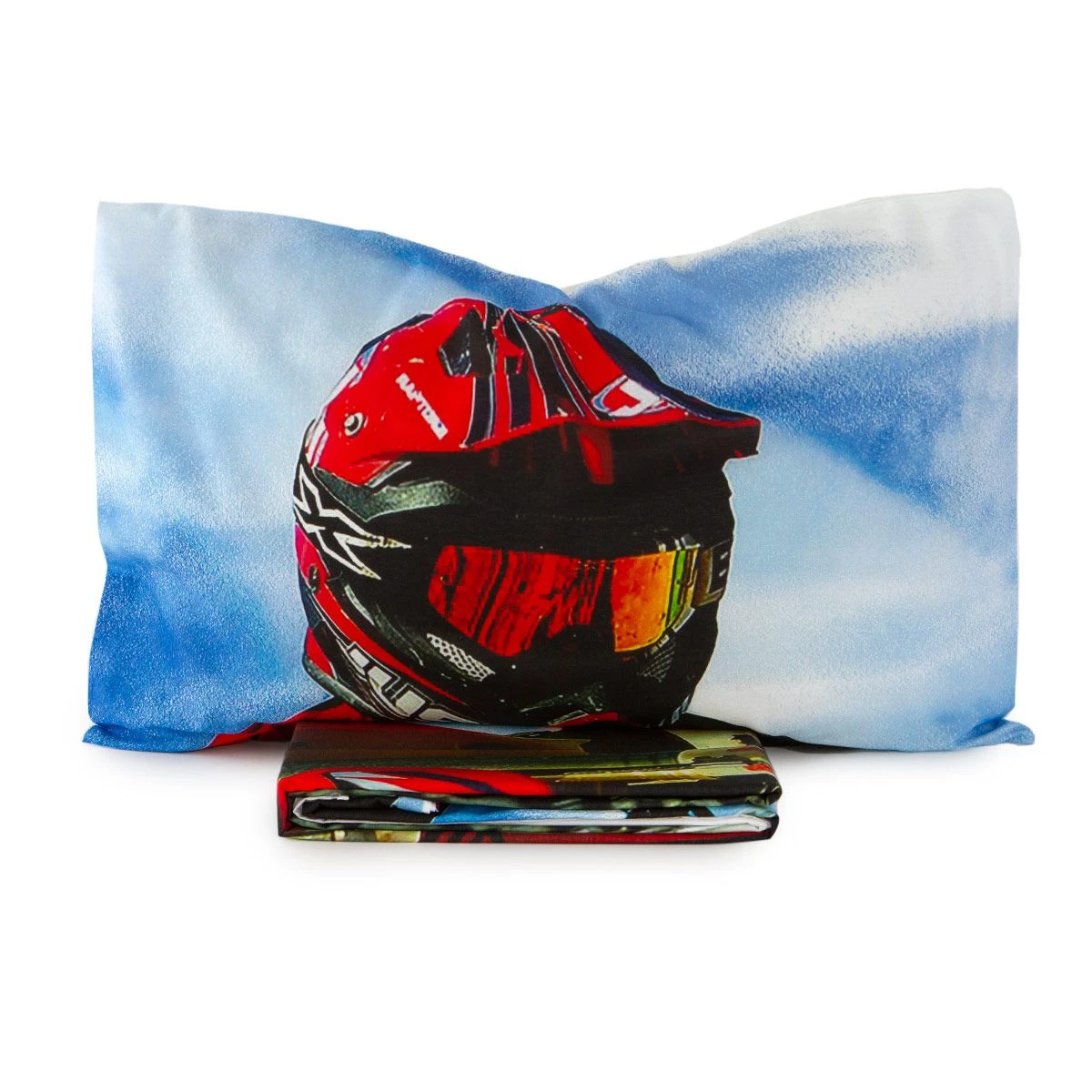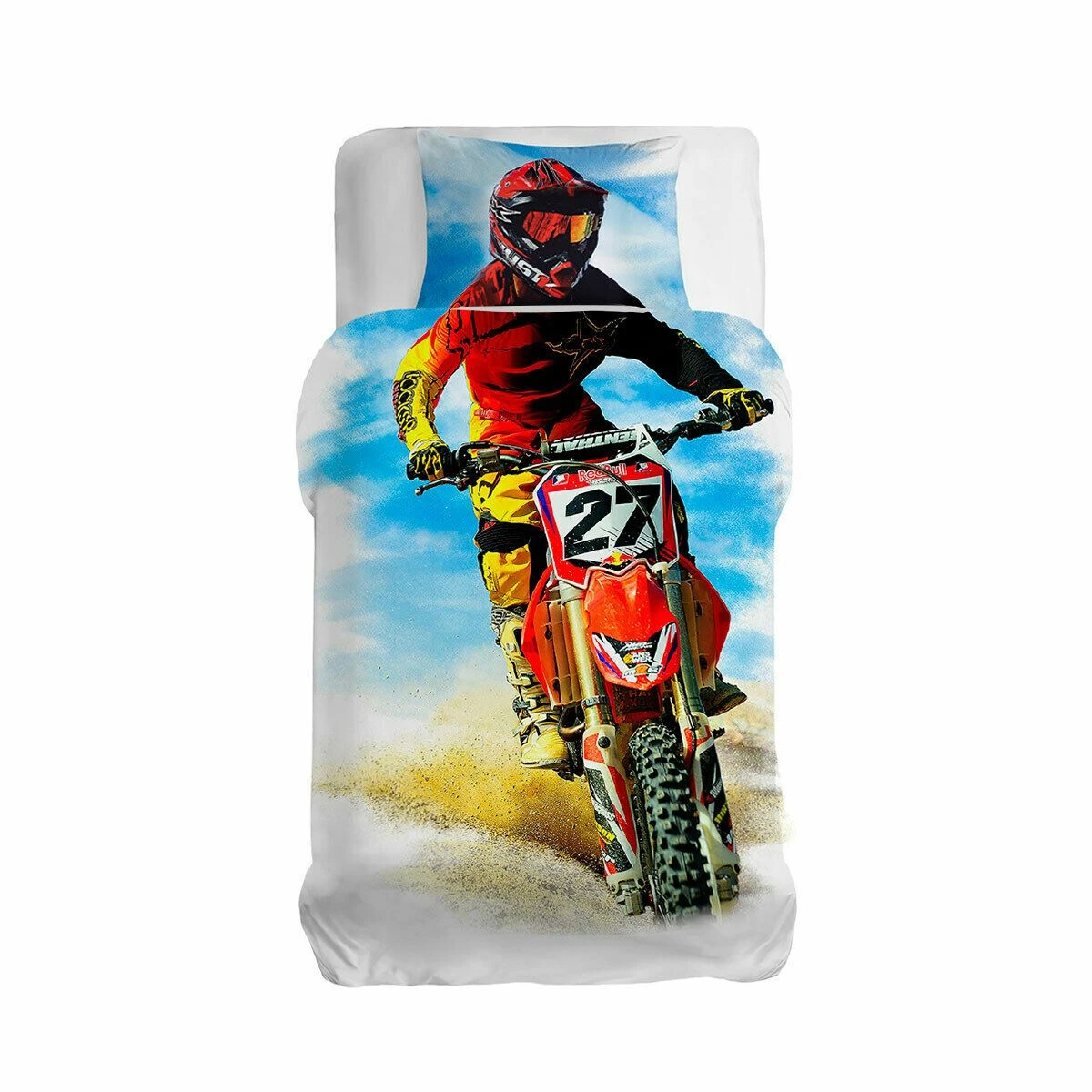 Nulla può eguagliare la sensazione di libertà che si prova in sella ad una moto, specialmente se si tratta di una moto da cross, tra le più estreme in quest’ambito. Questa parure copripiumino firmata Daunex sarà perfetta per portare una piccola parte di questo sport con sé anche in camera da letto.