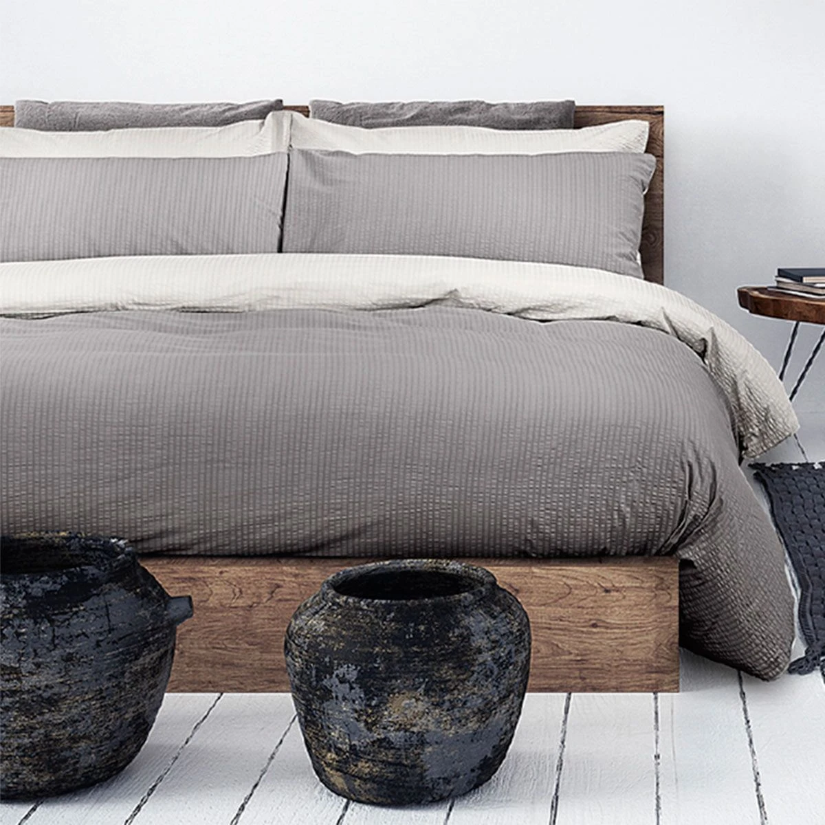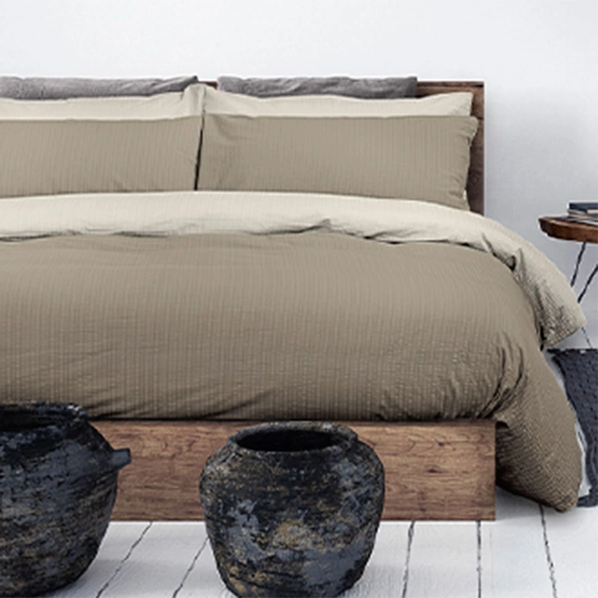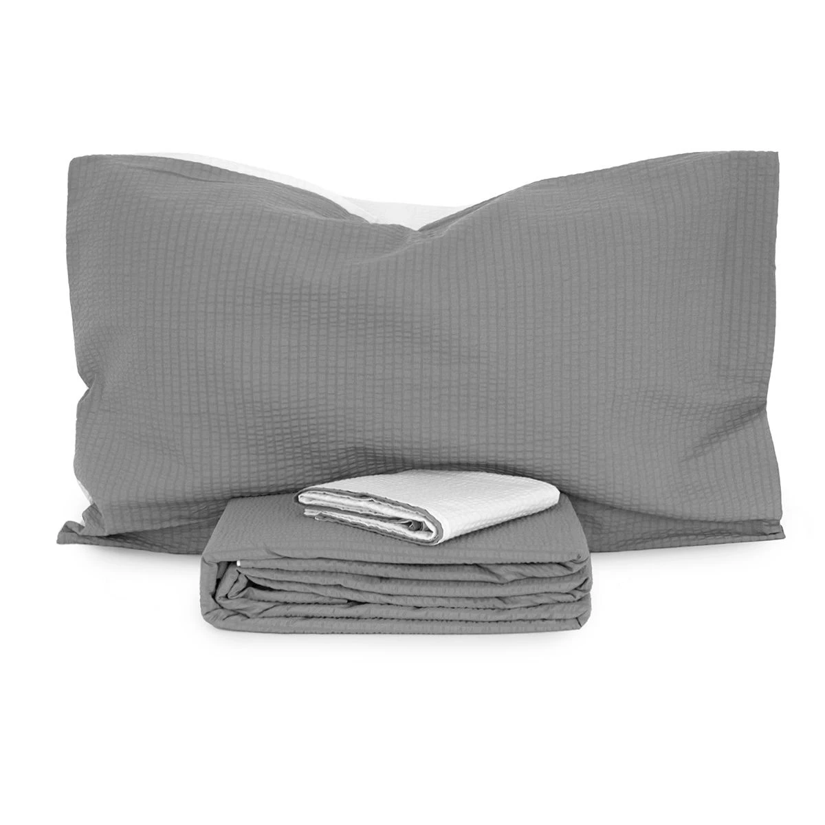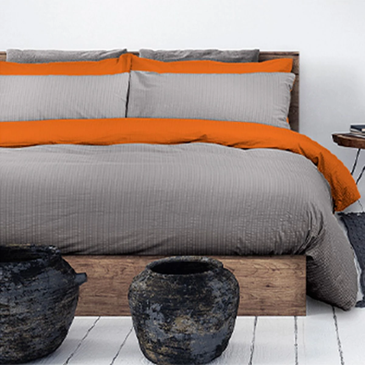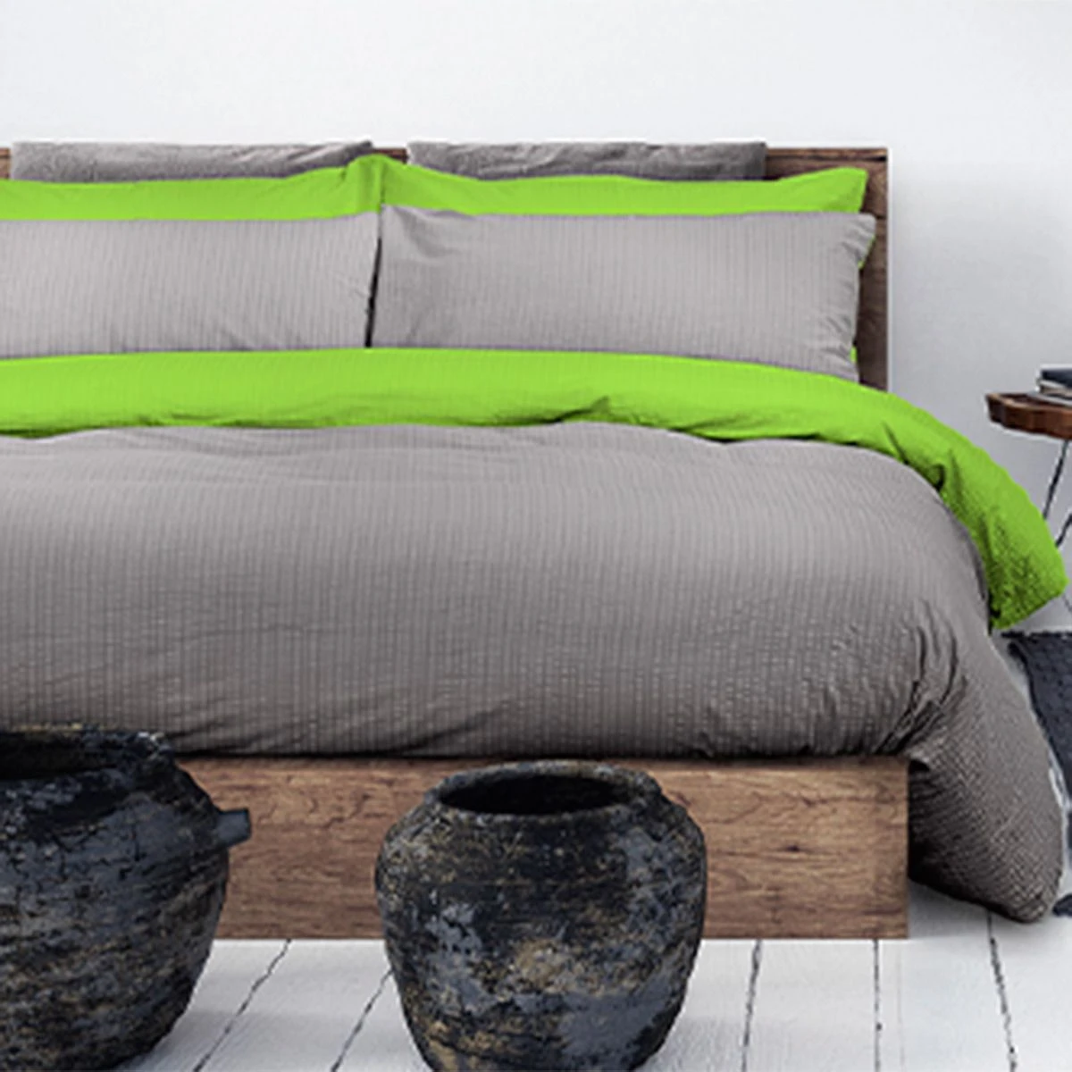 Seersucker è la parure copripiumino bicolor di Daunex. Grazie alla sua base in tinta unita si adatta a tutti gli arredamenti. Realizzata in puro cotone in fibra naturale, è utilizzabile anche senza stiratura grazie alla tecnologia No Stiro, che dona morbidezza al tessuto esaltandone la qualità.