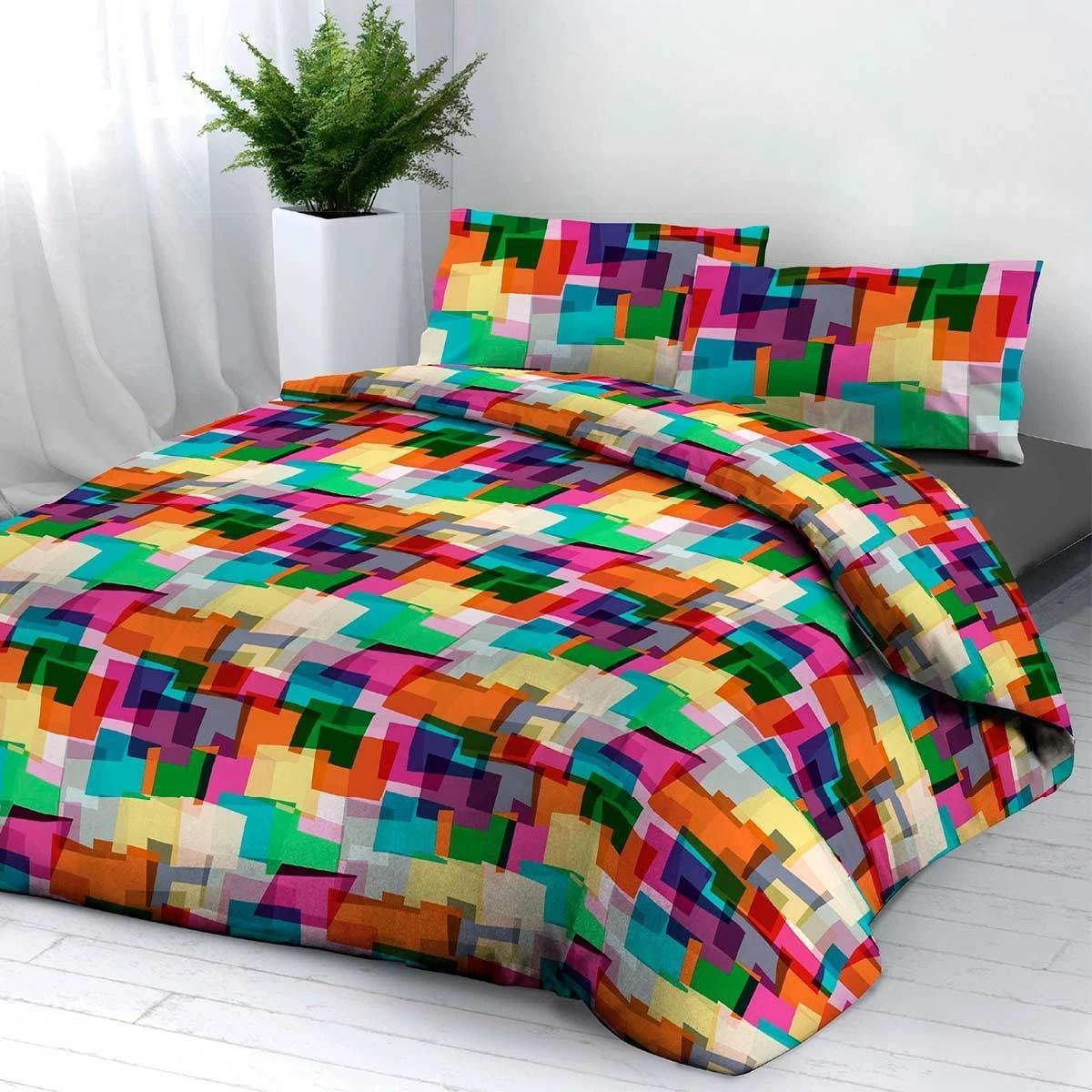Dal vivace motivo geometrico astratto questa parure copripiumino dallo stile moderno è pronta a dare una nota di colore alla camera. Quasi come il quadro di un pittore moderno rallegrerà le giornata con la sua alta qualità e morbidezza unica grazie alla fibra naturale del cotone e al design italiano che coronerà lo stile dalla camera da letto, che sia moderna, minimal o contemporanea.