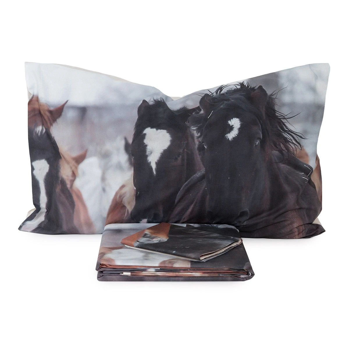 In morbido cotone questa parure copripiumino è pronta per tenerti al caldo. La stampa digitale in alta definizione ispira un meraviglioso senso di libertà con questa corsa sul manto bianco della neve, quasi ad ispirare un senso di ribellione fuori dal comune. I colori della stampa sono vividi e brillanti grazie all’alta qualità del prodotto e alla fibra naturale.