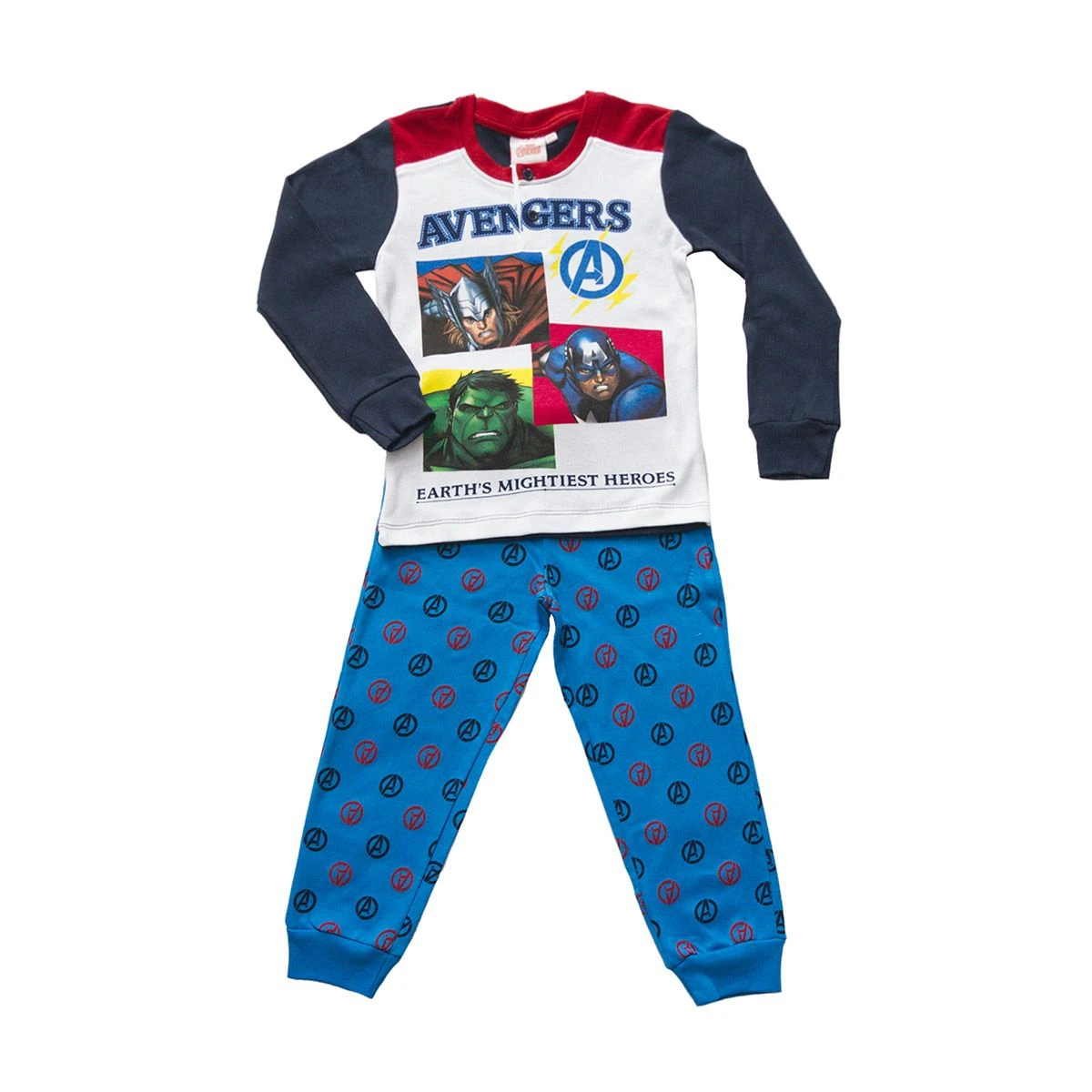 | Dettagli | La confezione contiene un pigiama per bambino composto da: 1 maglia stampata girocollo serafino a due bottoni e polsini elasticizzati 1 pantalone stampato con elastico in vita e polsini elasticizzati Stampa con il gruppo di eroi Avengers Dettagli in contrasto di colore Morbido caldo cotone adatto al periodo invernale Prodotto dalla licenziataria ufficiale del marchio |