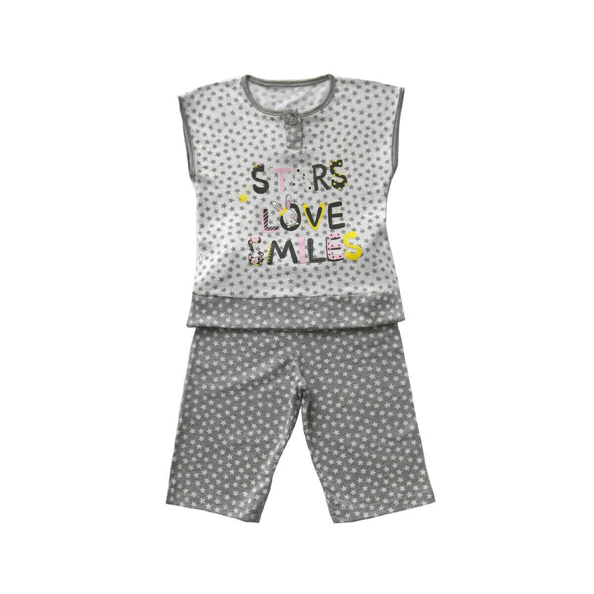 Il pigiama per bambina firmato BabyVip sfoggia un originale motivo a stelline che ricopre tutto il capo. Realizzato in puro cotone, sarà l’alleato ideale per mantenersi freschi nelle calde serate estive.
