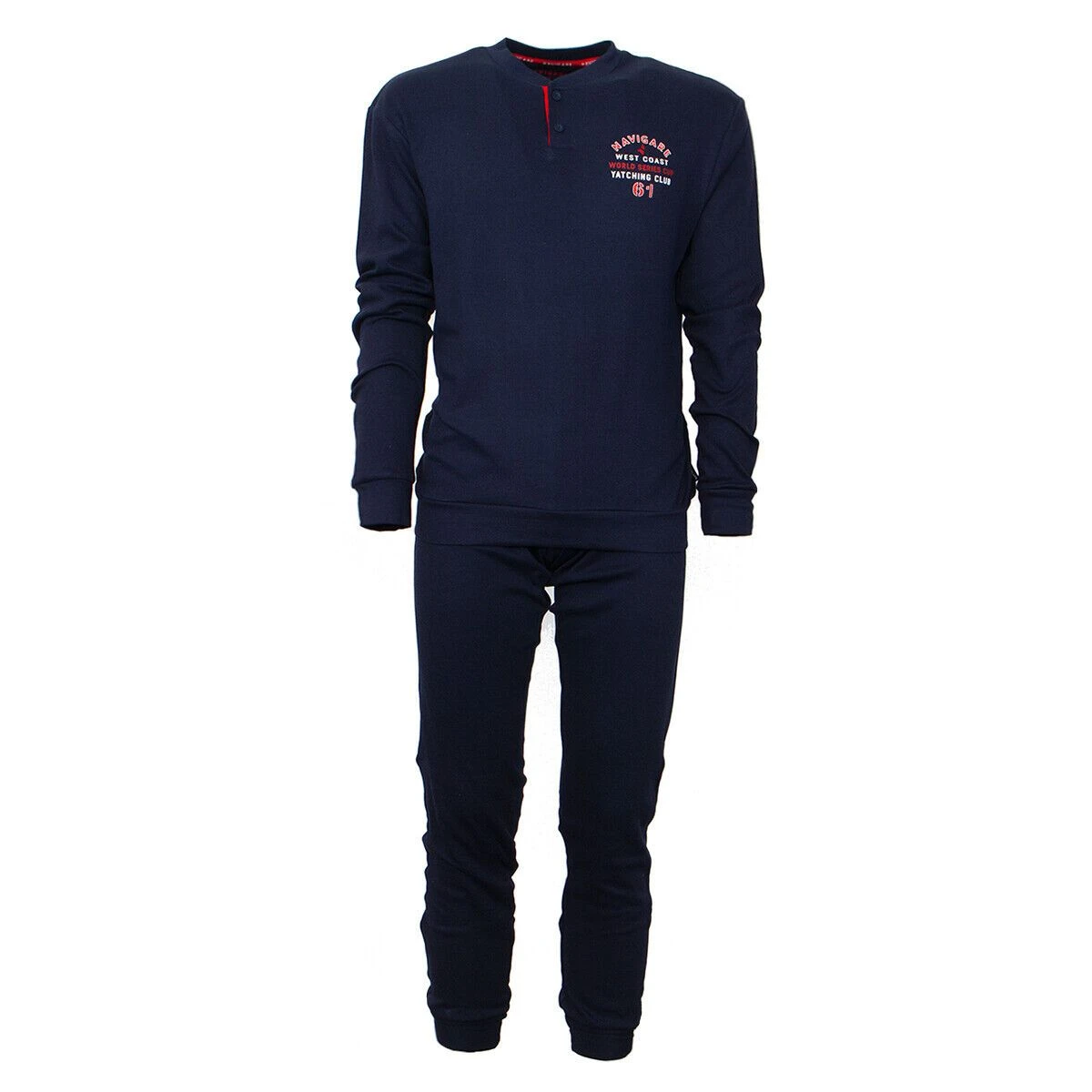 | Dettagli | La confezione contiene un pigiama da uomo navigare in caldo cotone composto da: 1 maglia a manica lunga con scollo serafino e stampa all’altezza del petto 1 pantalone in tinta unita e polsini elasticizzati Bottoncini con logo inciso Morbido e soffice caldo cotone Ideale per il periodo invernale Confezionato in una scatola stampata |