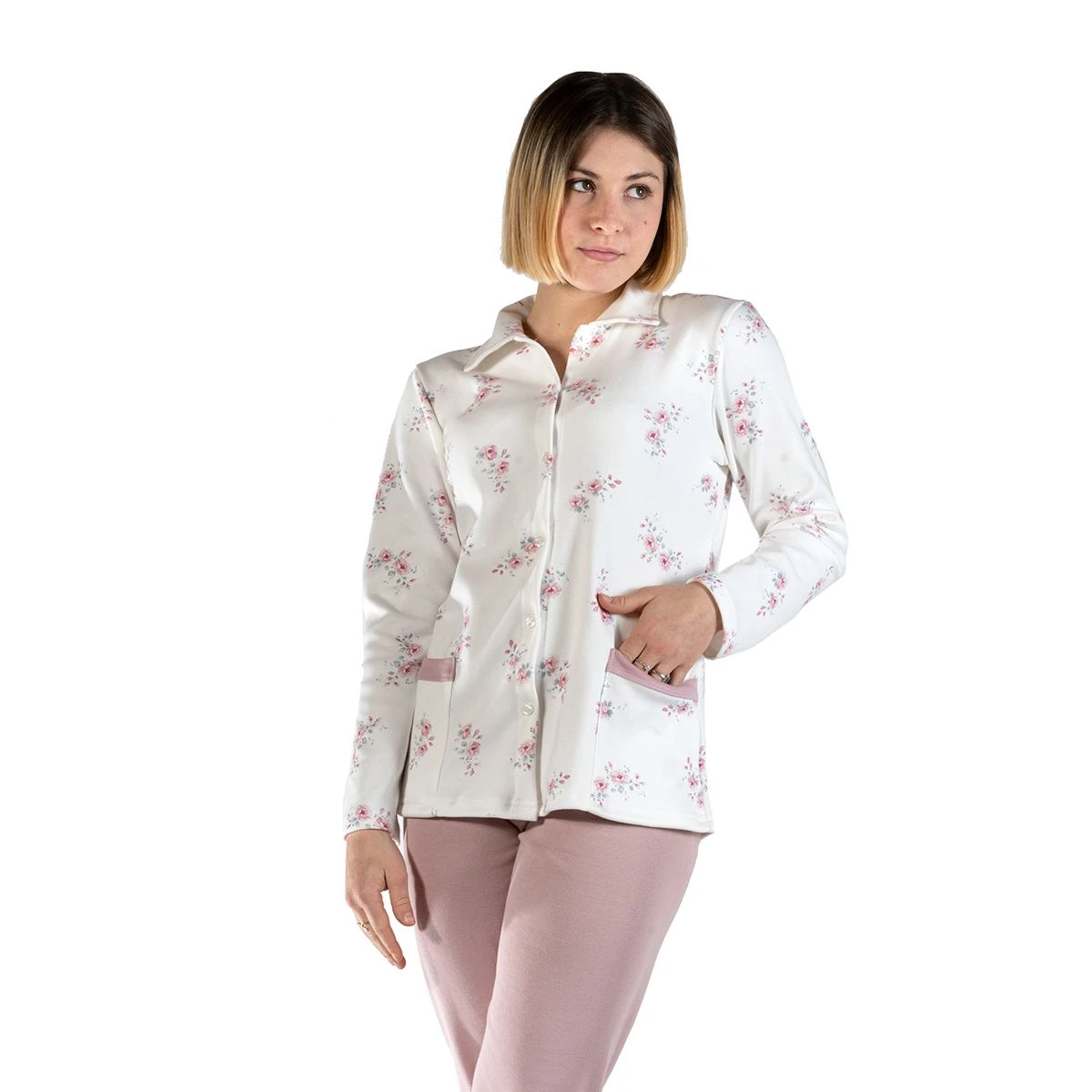 | Dettagli | La confezione contiene un pigiama da donna composto da: 1 maglia aperta a manica lunga con bottoncini e stampa floreale 1 pantalone tinta unita con elastico in vita Maglia dotata di colletto e tasche laterali Morbido e soffice caldo cotone Il prodotto è confezionato in scatola Made in Italy |
