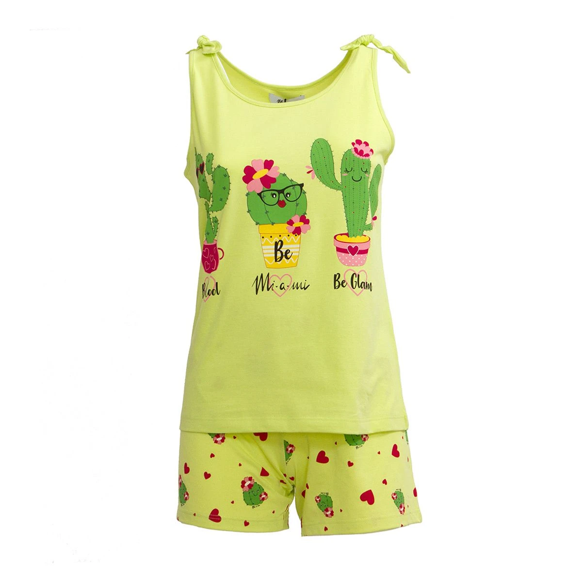 | Dettagli | La confezione contiene un pigiama da donna composto da: 1 canotta spalla larga con scollo tondo e stampa centrale di cactus 1 pantaloncino corto stampato con elastico in vita Jersey di cotone, fresco e leggero, ideale per il periodo estivo Colori brillanti e vivaci Confezionato in una scatola stampata |