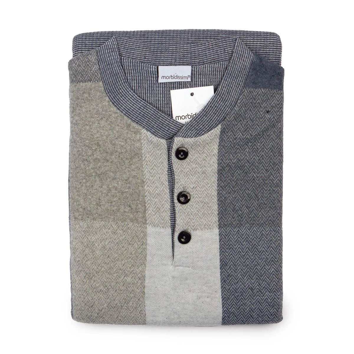 Perfetto per l’inverno, comodo e caldo, il pigiama Riccardo di Morbidissimi con stampa a quadri, sarà il capo perfetto per combattere il freddo. Realizzato in punto milano, morbido e confortevole.