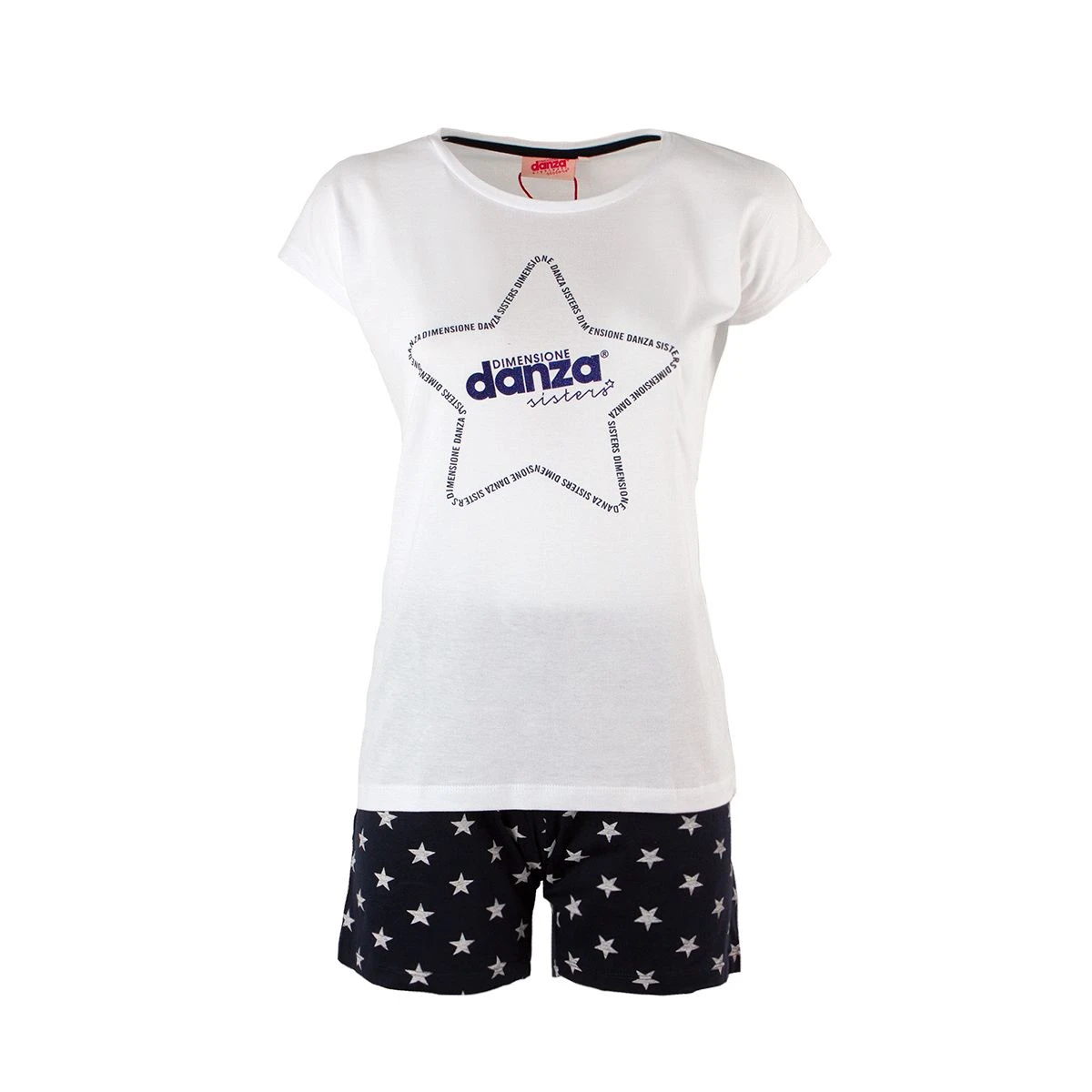 Una stella è la protagonista della stampa del pigiama Dimensione Danza, ideale per dare carica e positività. Realizzato in fresco e morbido cotone è ideale per il periodo estivo, un capo che permette di essere glamour anche in casa.