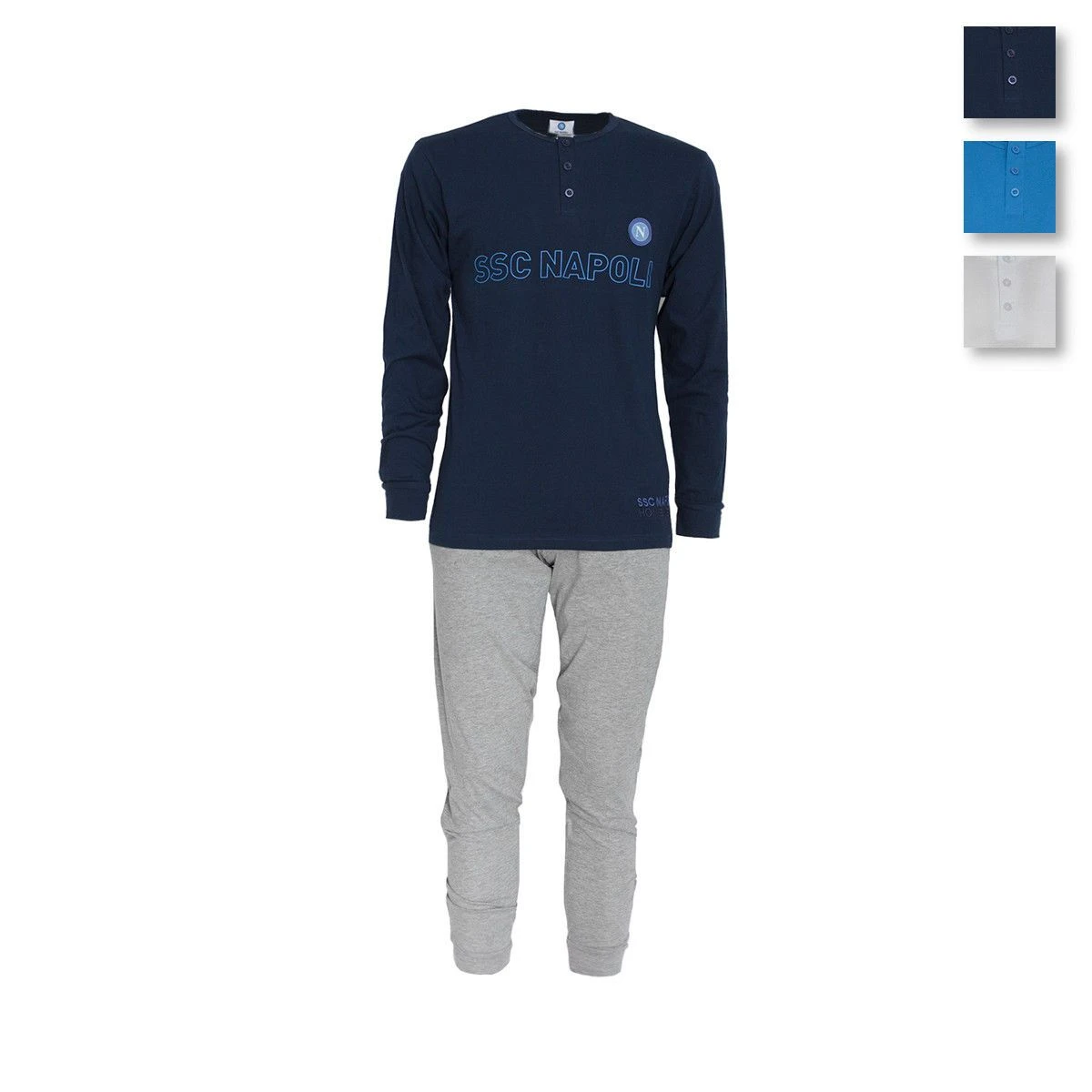 Ideale per essere indossato tutto l’anno, il pigiama originale della SSC Napoli per bambino ha i tipici colori della tanto amata squadra del cuore. Lo scollo serafino con bottoncini in cooordinato rende più semplice indossarlo.