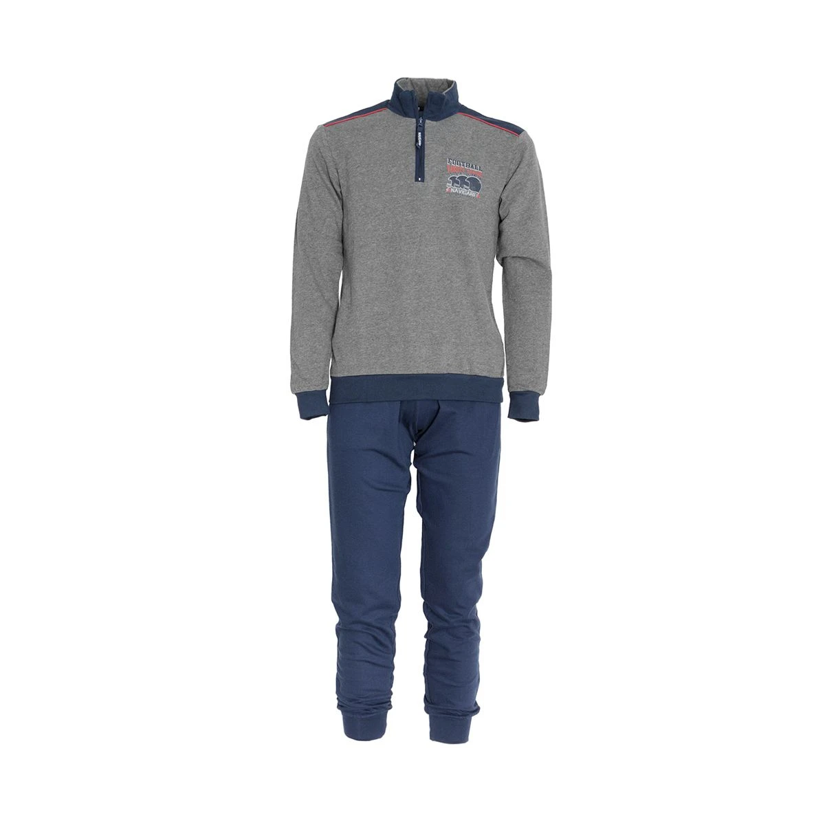 | Dettagli | La confezione contiene un pigiama tuta da ragazzo in felpa di cotone composto da: 1 maglia con collo mezza zip e polsini elasticizzati sia al bordo che alle maniche 1 pantalone in tinta unita con elatico in vita, taschino posteriore e comodi polsini elasticizzati Stampa in contrasto di colore Ottimo per stare in casa Prodotto confezionato in scatola Styled in Italy |