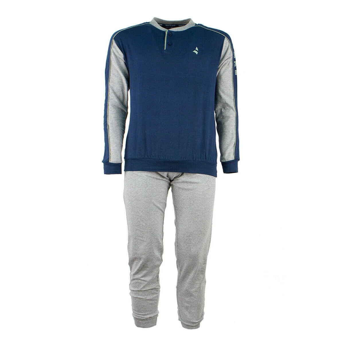 | Dettagli | La confezione contiene un pigiama da uomo taglie forti composto da: Una maglia manica lunga, scollo serafino, con logo sul petto e polsini elasticizzati Un pantalone lungo in tinta unita con elastico in vita e polsini elasticizzati Bottoncini con logo inciso Cotone, fresco e leggero, adatto per tutto l’anno Confezionato in una scatola stampata |