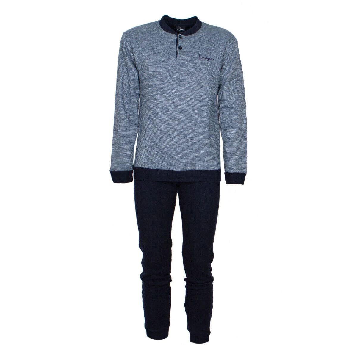Questo pigiama Navigare, realizzato in punto milano, si presenta come una valida opzione per affrontare il freddo delle stagioni invernali. Molto caldo e confortevole, il pigiama presenta uno stile semplice ma moderno.