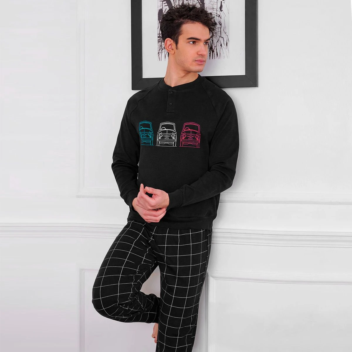 La collezione Cose da Uomini di Oronero si arricchisce con un pigiama dal design Italiano e dal tocco British nei dettagli, come la stampa centrale che raffigura tre automobili che richiamano L’Inghilterra nei colori, e nella guida a destra.