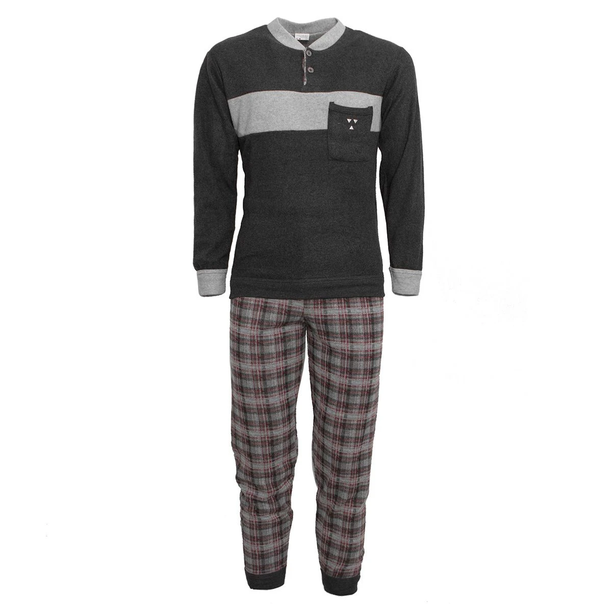 | Dettagli | La confezione contiene un pigiama invernale per uomo composto da: 1 maglia con scollo serafino, taschino all’altezza del petto e polsini elasticizzati 1 pantalone con motivo a quadri scozzese, elastico in vita e polsini elasticzzati Dettagli in contrasto di colore Punto milano a maglia rasata, particolarmente compatta e calda Morbido e soffice Ideale per il periodo invernale Confezionato in una scatola stampata Made in Italy |