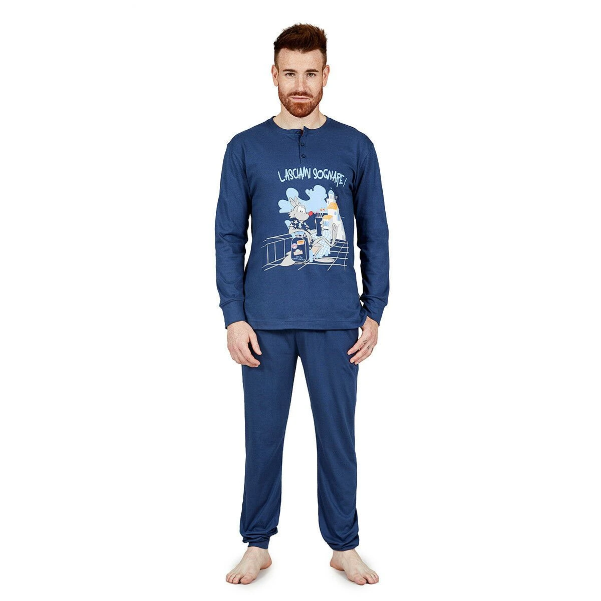 | Dettagli | La confezione contiene un pigiama per uomo composto da: 1 maglia a maniche lunghe, girocollo e stampa centrale 1 pantalone lungo tinta unita, elastico in vita, polsini elasticizzati 1 sacchetto porta pigiama con laccio di chiusura Puro cotone fresco e leggero, ideale per tutto l’anno |