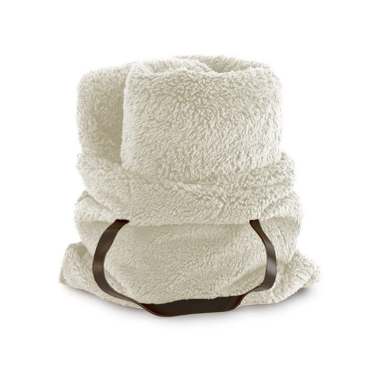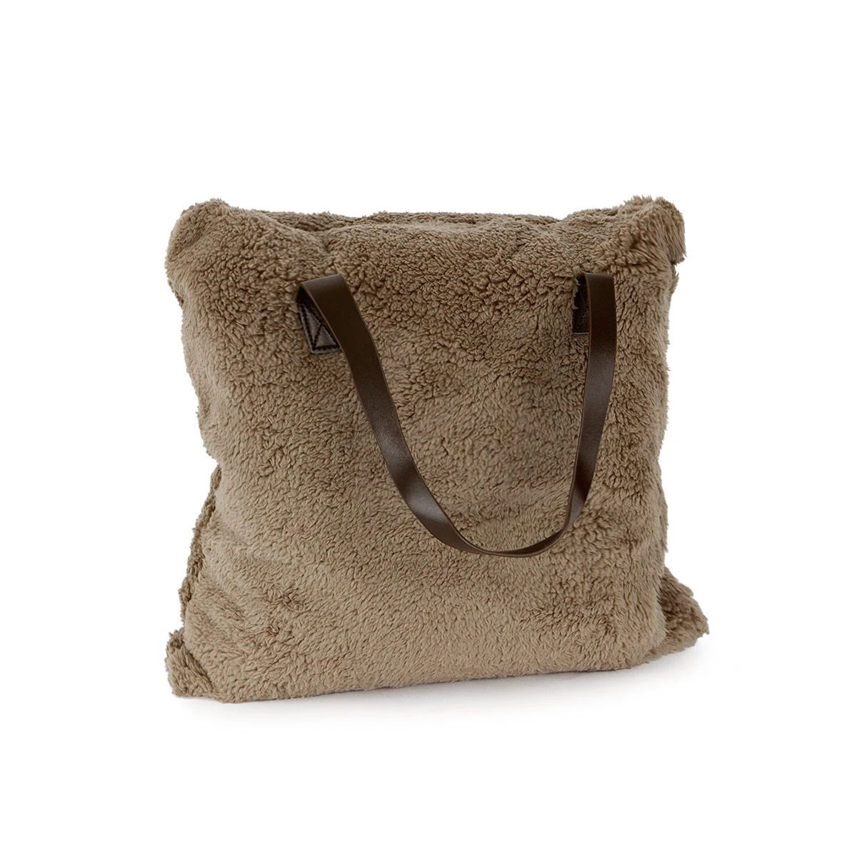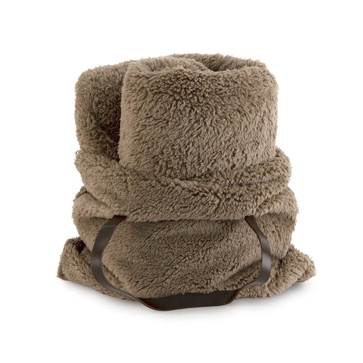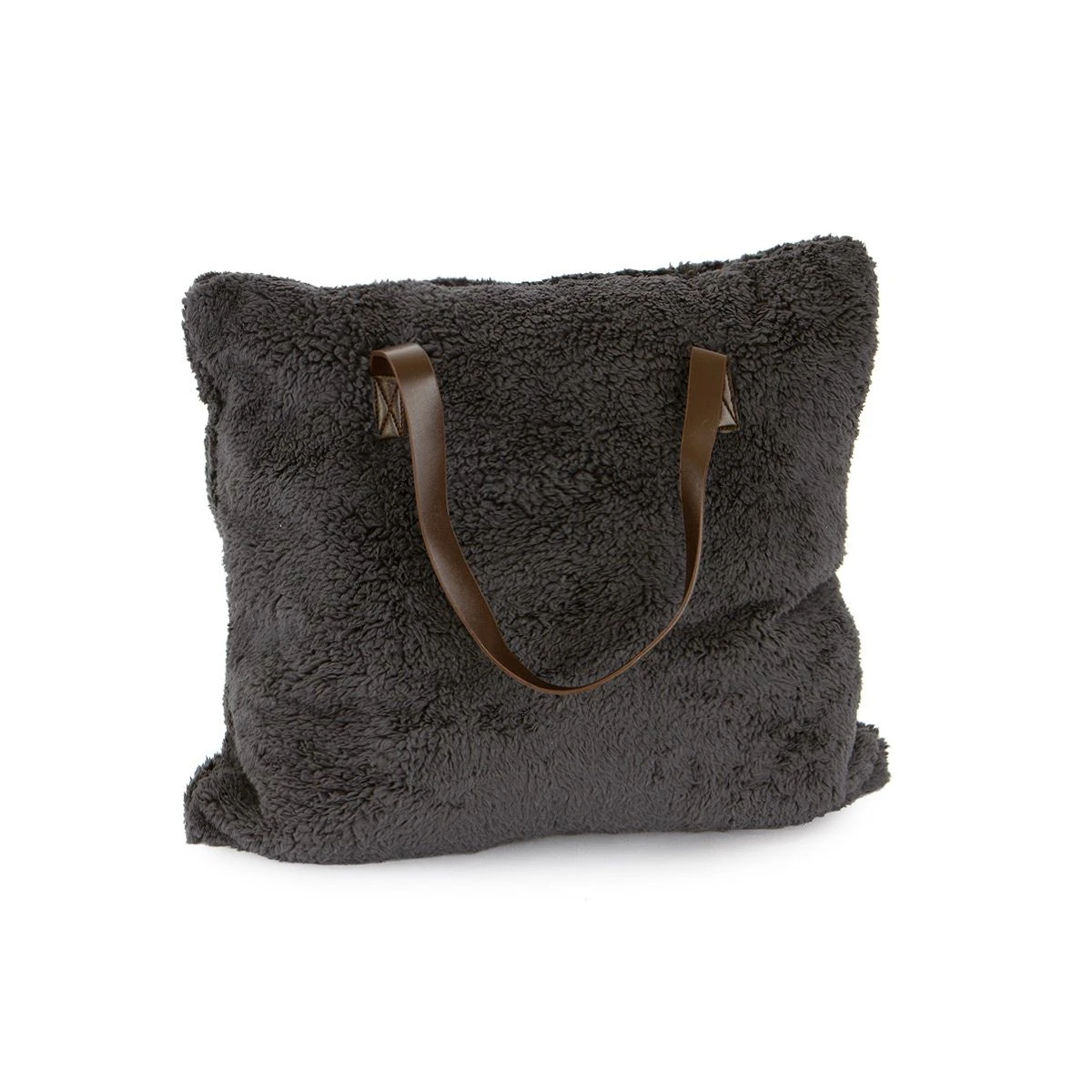 Una morbidissima borsa realizzata in sherpa contiene il plaid Teddy, caldo e soffice e realizzato con il medesimo materiale. Portarlo con sé sarà semplice grazie alla pratica borsa in coordinato di colore.