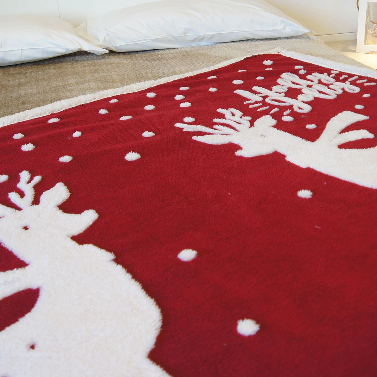 | Dettagli | La confezione comprende un plaid in sherpa Doppio strato con retro agnellato sherpa Lavorazione jacquard con renne natalizie Estremamente morbido, super soffice e caldissimo Peso: 480 gr/mq Anallergico e antibatterico Disegnato e progettato in Italia |