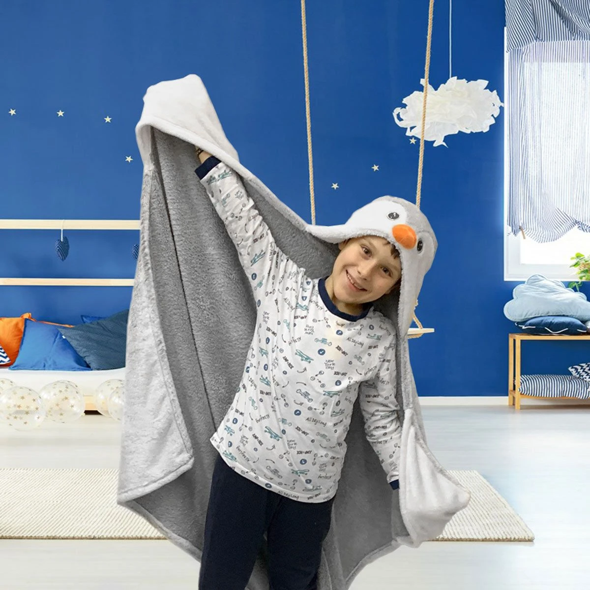 Il termine “bradipo” significa “piede lento”, questo simpaticissimo animale infatti è famoso proprio per la sua pigrizia, un po’ come quella dei piccoli di casa nelle fredde giornate invernali, in cui si ha voglia di stare sempre al caldo della propria abitazione. Questo plaid, indossabile come poncho, sarà perfetto per tenere i bambini al caldo in qualsiasi situazione.